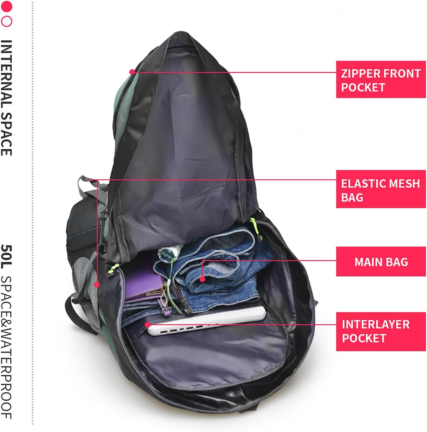 Bseash 50L Hiking Backpack, Water Resistant Lightweight Outdoor Sport Daypack Travel Bag for Camping Climbing Skiing Cycling (Army Green - With Shoe Compartment)