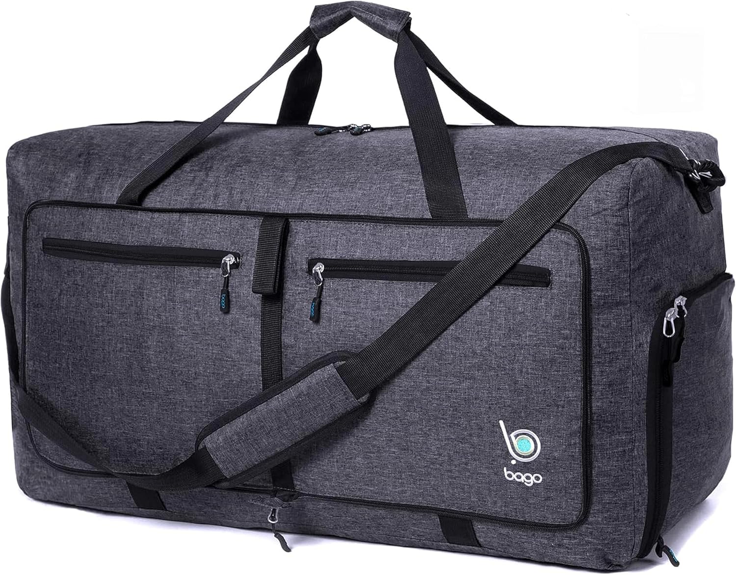 Bago Foldable Duffel Bags for Traveling Women & Men - 60L Medium Packable Duffle Bag for Travel with Shoe Compartment - Water Repellant, Heavy Duty, Lightweight Folding & Collapsible (SnowBlack)