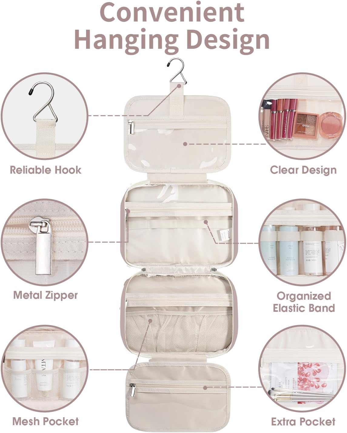 Narwey Hanging Toiletry Bag for Women Travel Makeup Bag Organizer Toiletries Bag for Travel Size Essentials Accessories Cosmetics (Dusty Rose (Medium))