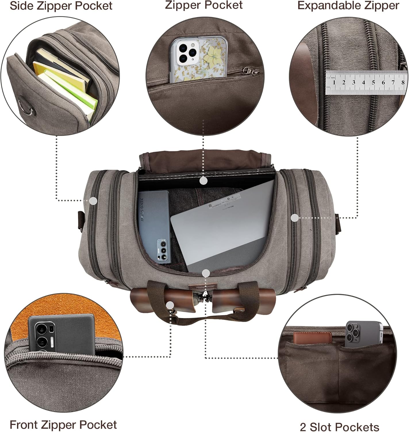 Wildroad 50L Travel Duffel Bag, Expandable Canvas Genuine Leather Duffle Bag Upgraded Overnight Weekender Carry on Bag
