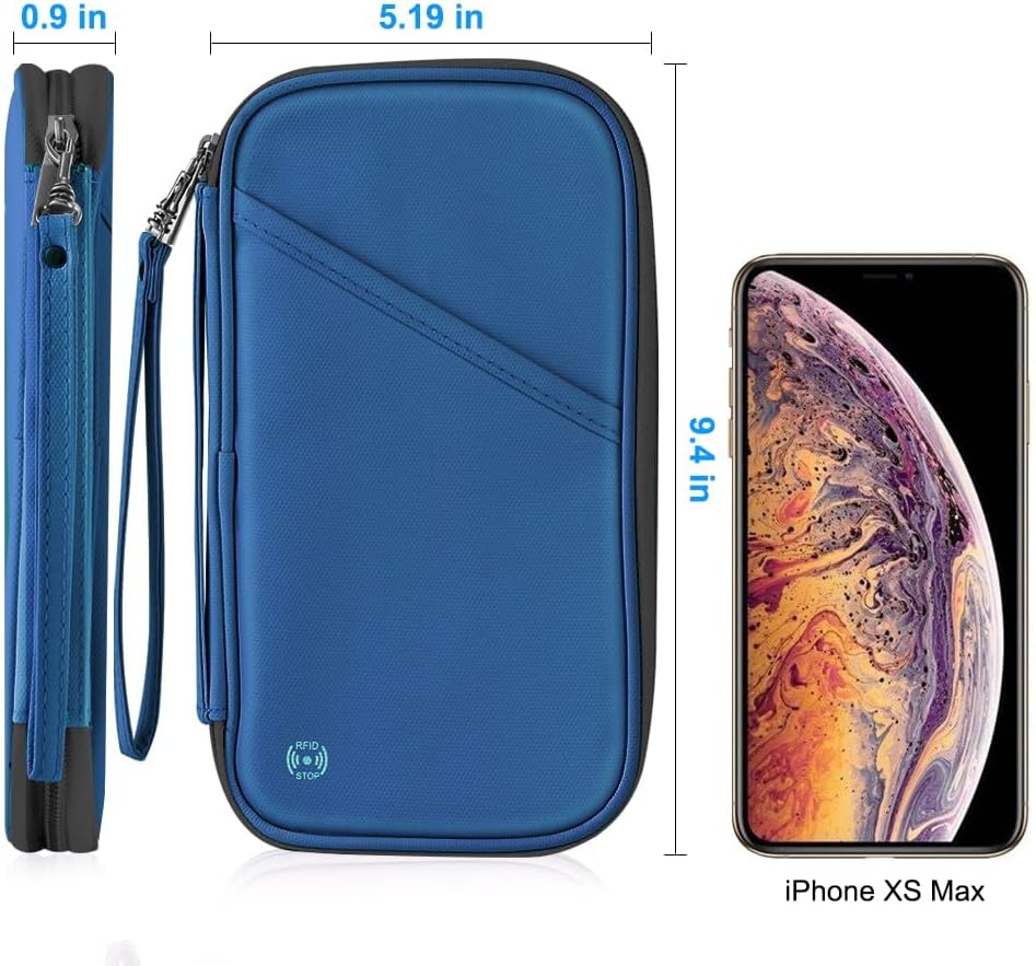 RFID Passport Holder for Family - Large Travel Wallet Holder with Zipper Pocket, Lightweight Portable Document Organizer Passport Card Cover, Blue