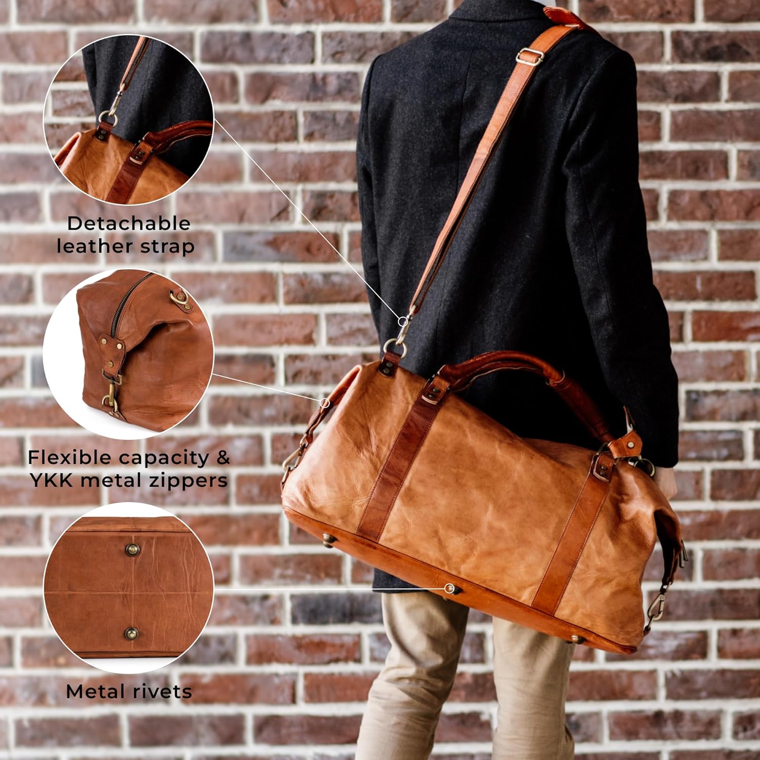 Berliner Bags Vintage Leather Duffle Bag München for Travel or the Gym, Overnight Bag for Men and Women - Brown (Cognac)