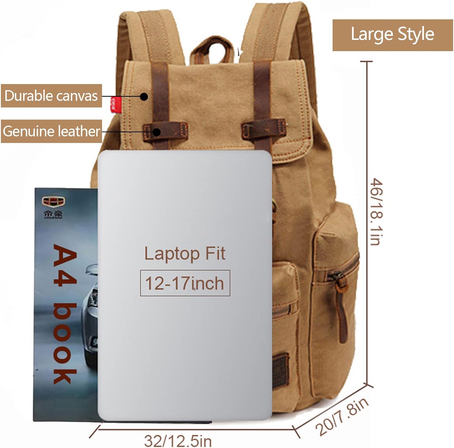 - Large backpack: canvas backpack size is about 18.1 x 12.6 x 7.8 inches, large. Enough to fit everyday things such as laptop, notebook, iPad, lunch, shaving equipment, clothes or other accessories you need.