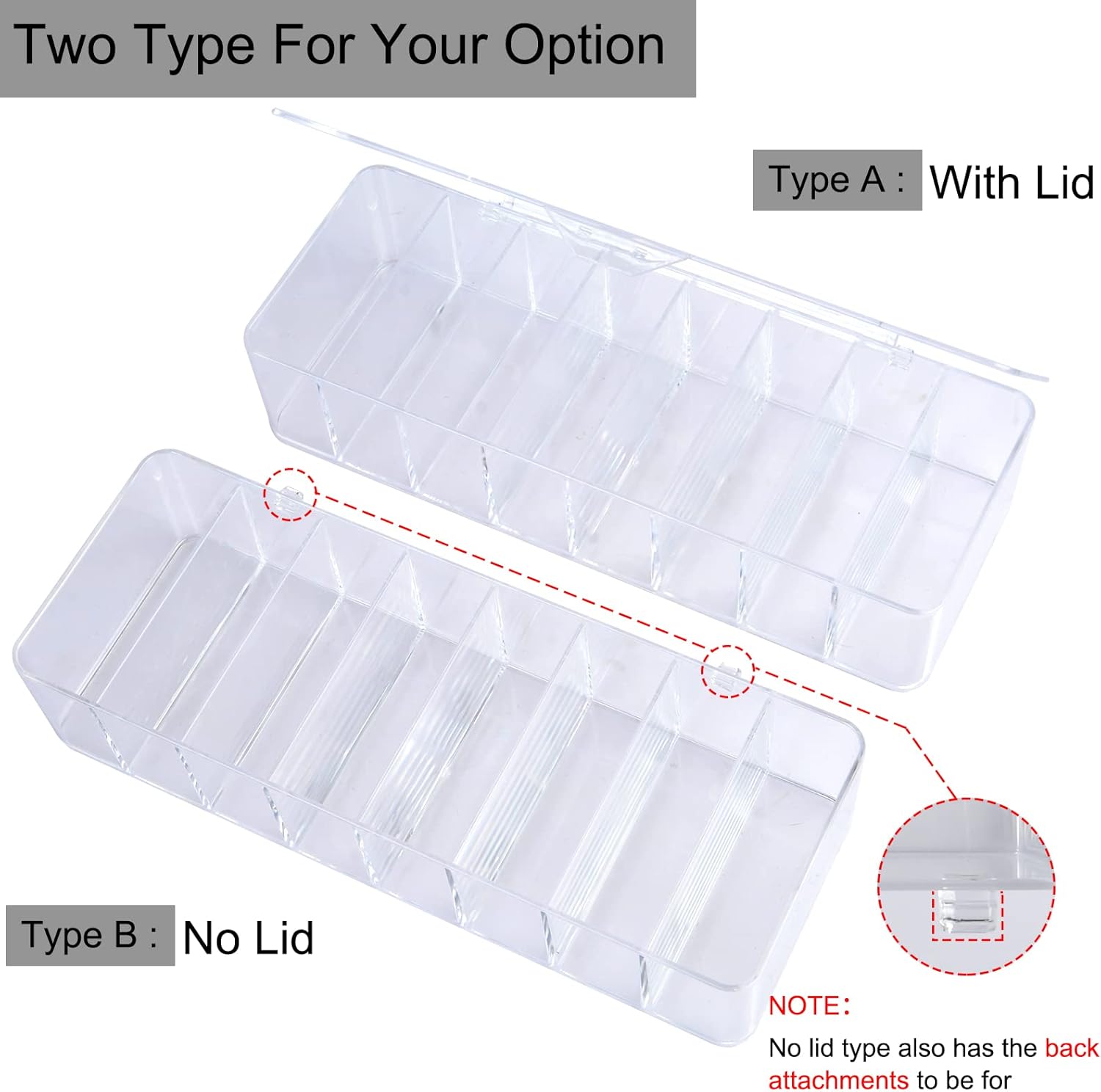 - [Portable Size] Overall dimension of the box:10.2 x 3.74 x 2.24inches (LxWxH);cable wraps:5.9 x 0.47 inches (LxW).Good to put on desktop or put in drawer or closet without taking much space.Also convenient to carry in handbag or backpack when out for travelling.The box is made of high quality clear acrylic material,transparent,odorless and durable. [Note:]-[Two types are available here:With Lid or No Lid,please clear that the no lid type also has the back attachments to be for]