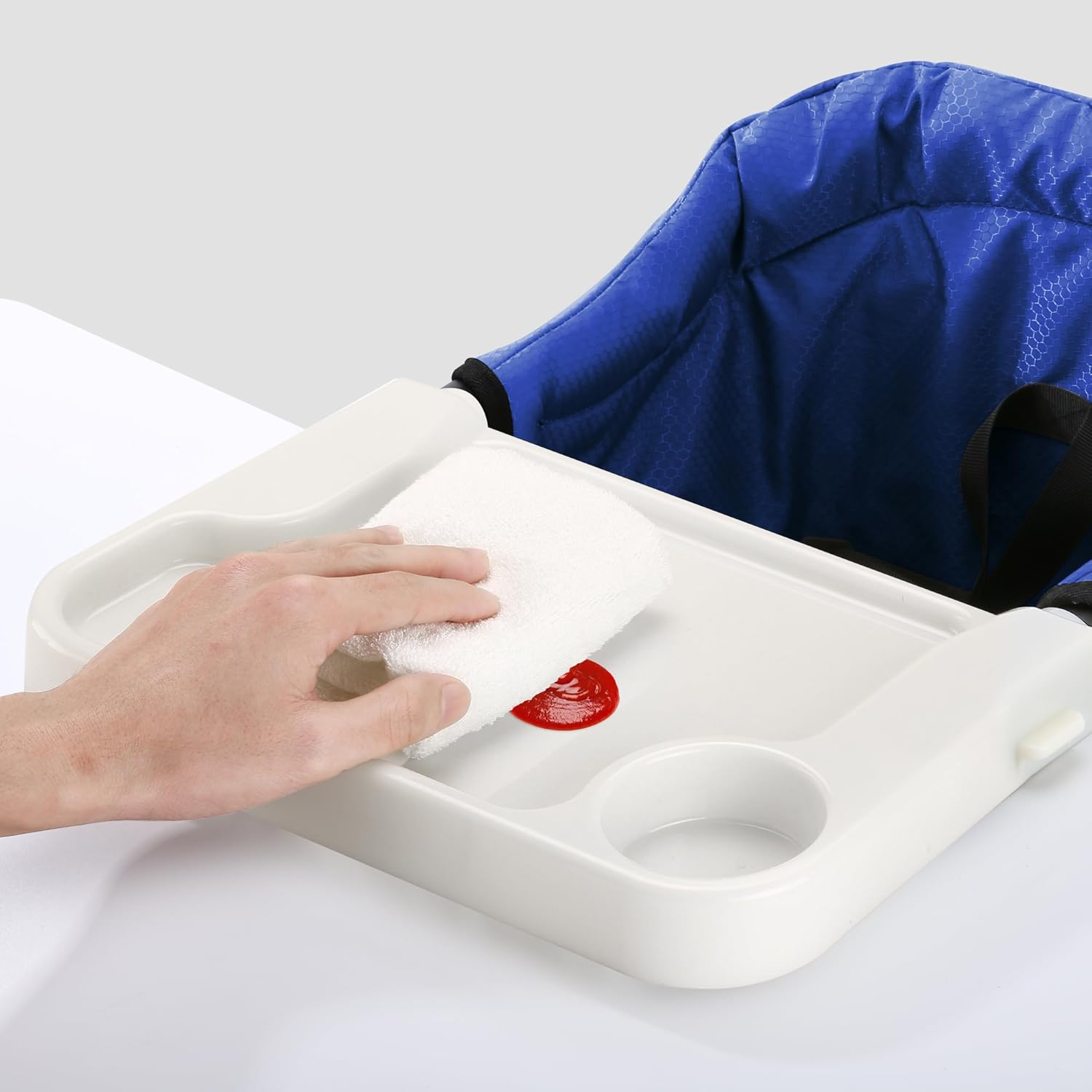 - Infant hook-on chair with tray: Our baby chair comes equipped with a convenient attachable/detachable dining tray, hassle-free in and out. When your little one grows, remove the tray and boost him up to the kitchen table to eat with the grownups!