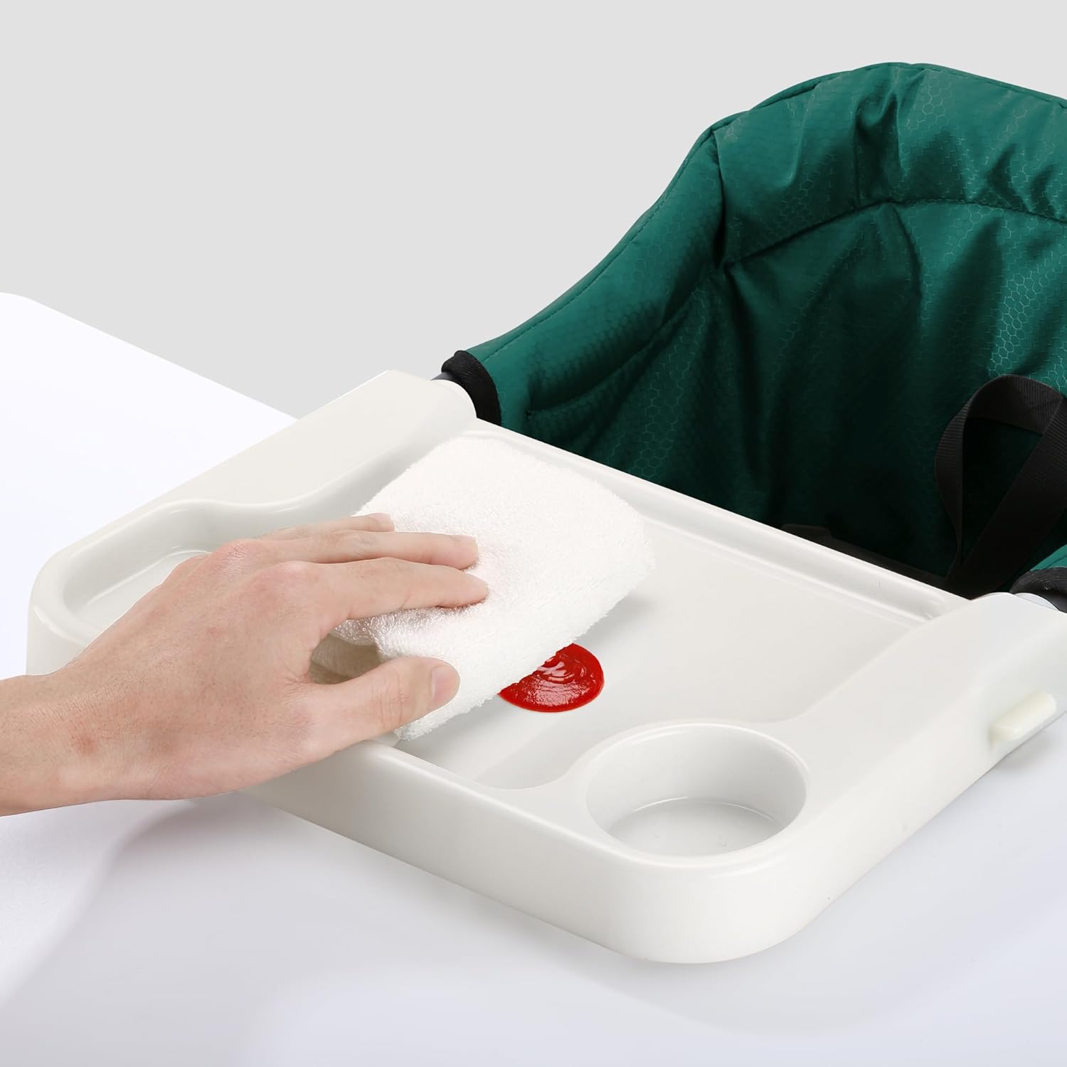 Hook On Chair with Removable Dining Tray, Portable Table High Chair, Folding Compact Baby Seat with Storage Bag for Indoor/Outdoor,Dark Green