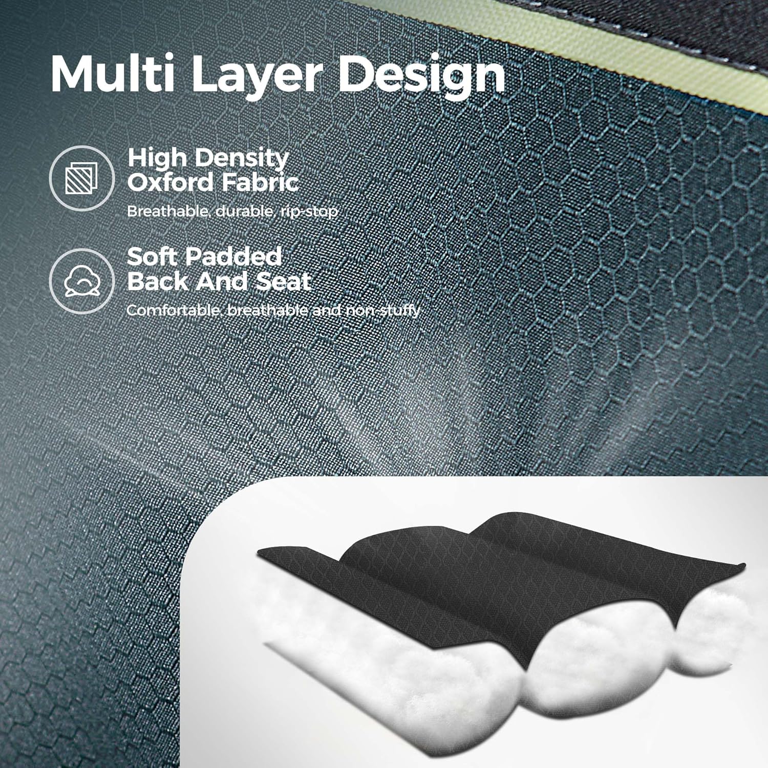 - 【Large Size】 Oversized Camping Folding Chair Size is 25.20" L x 36.61" W x 39.37"H, Weight is 13.2lbs, Large seat area with 600x 300D padded oxford fabric and padded armrest ensure comfort of this chair