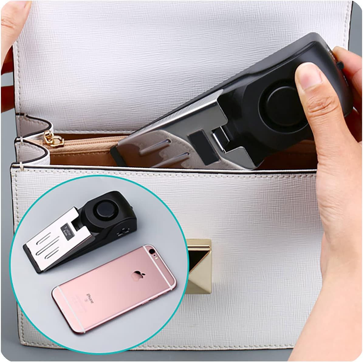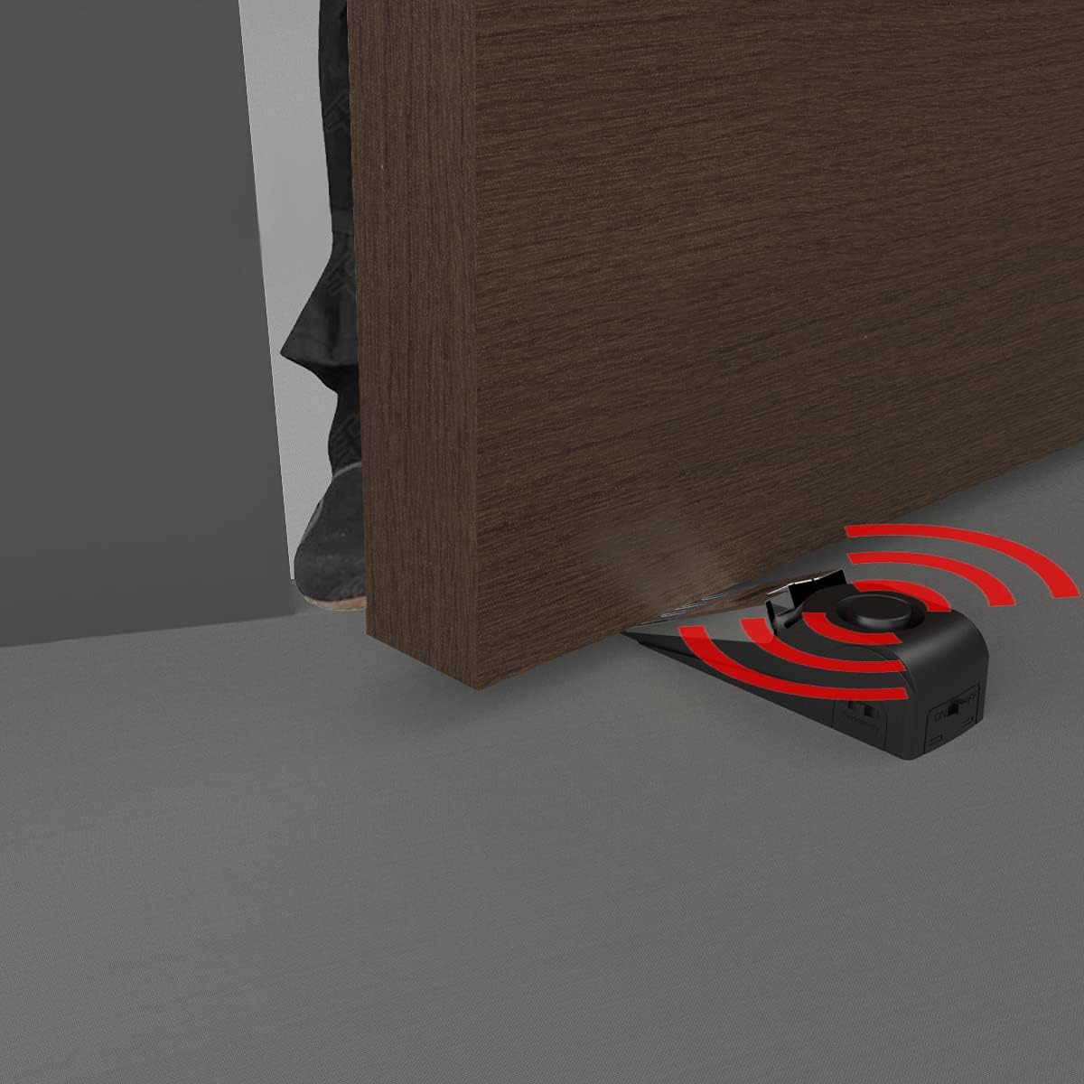 - ✔Non-Skid Door Stopper– When door stopper alarm is in the "off" state, it acts as common door wedge, its high damping rubber prevents the door from sliding and keeps the door in the open position.