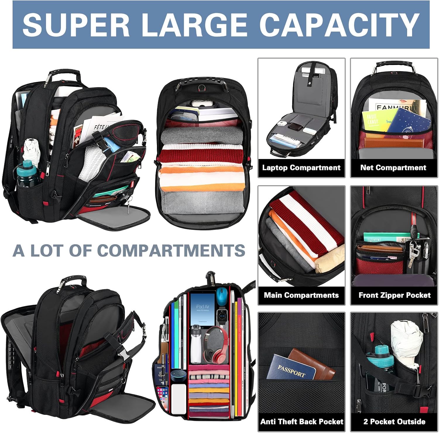 18.4 Laptop Backpack for Men, Extra Large Gaming Laptops Backpack with USB Charger Port, TSA Friendly Big Capacity Heavy Duty Travel Computer Bag RFID Anti-theft Pocket Backbag,21.2*15.5*11.5inch Red