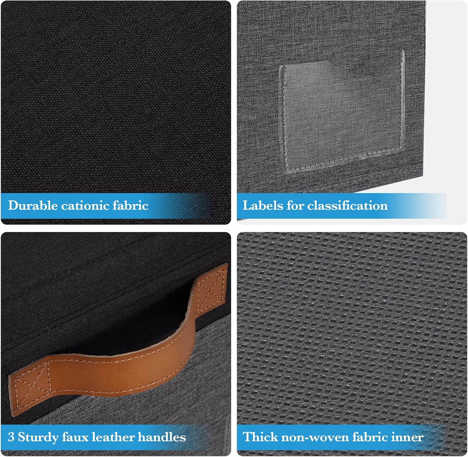 Large Storage Bins with Lids, Foldable Fabric Storage Baskets with Lids, Sturdy Storage Boxes with Labels and 3 PU Handles for Closet Home Bedroom Office (26L, 3 Packs, Grey&Black)
