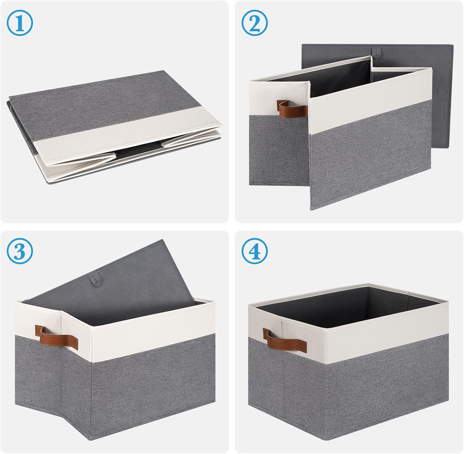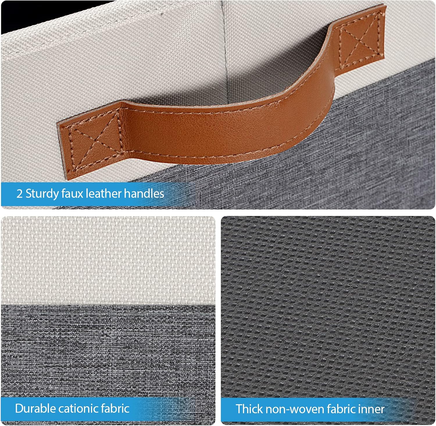 - 【Sturdy-Strong】There are stiff cardboards inserted in the bottom, lid and all side walls for support allowing these storage bins and keep them standing and structural integrity. This storage bins comes with a Sturdy faux leather handleson both side, strong handles convenient for you to pull out the bins from the shelves and easy carry to everywhere.