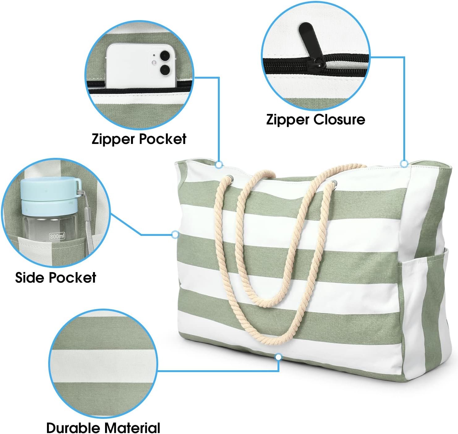 - Large Capacity: The beach bag tote can hold 4-6 large beach towels, extra clothes, shoes, sunblock, water bottles, beach toys, etc. Recommend for a beach vacation, tote bag, travel bag, duffel bag, swim pool bag, nurse bag, weekend bag, cruise must haves