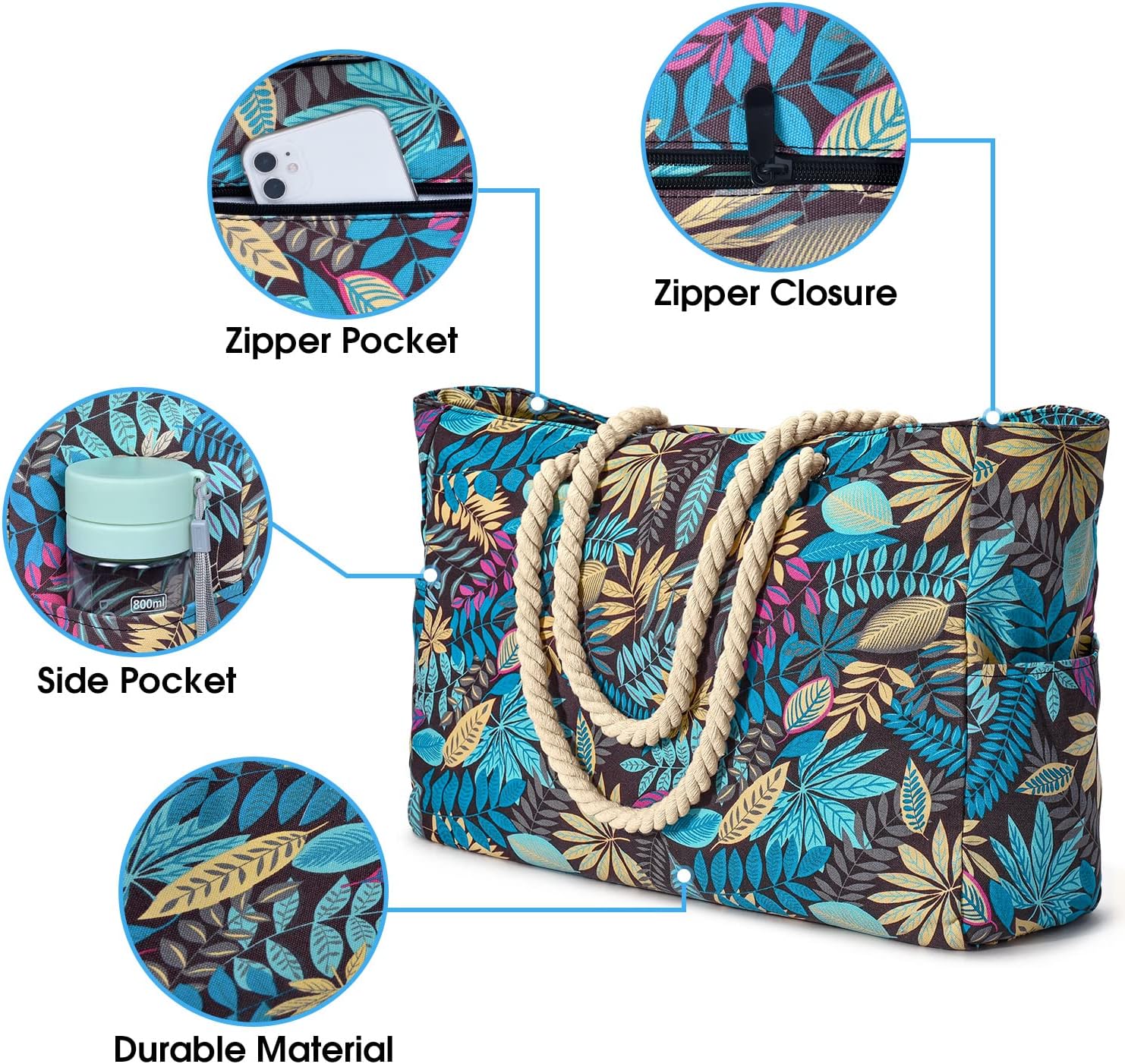 - Large Capacity: The beach bag tote can hold 4-6 large beach towels, extra clothes, shoes, sunblock, water bottles, beach toys, etc. Recommend for a beach vacation, tote bag, travel bag, duffel bag, swim pool bag, nurse bag, weekend bag, cruise must haves