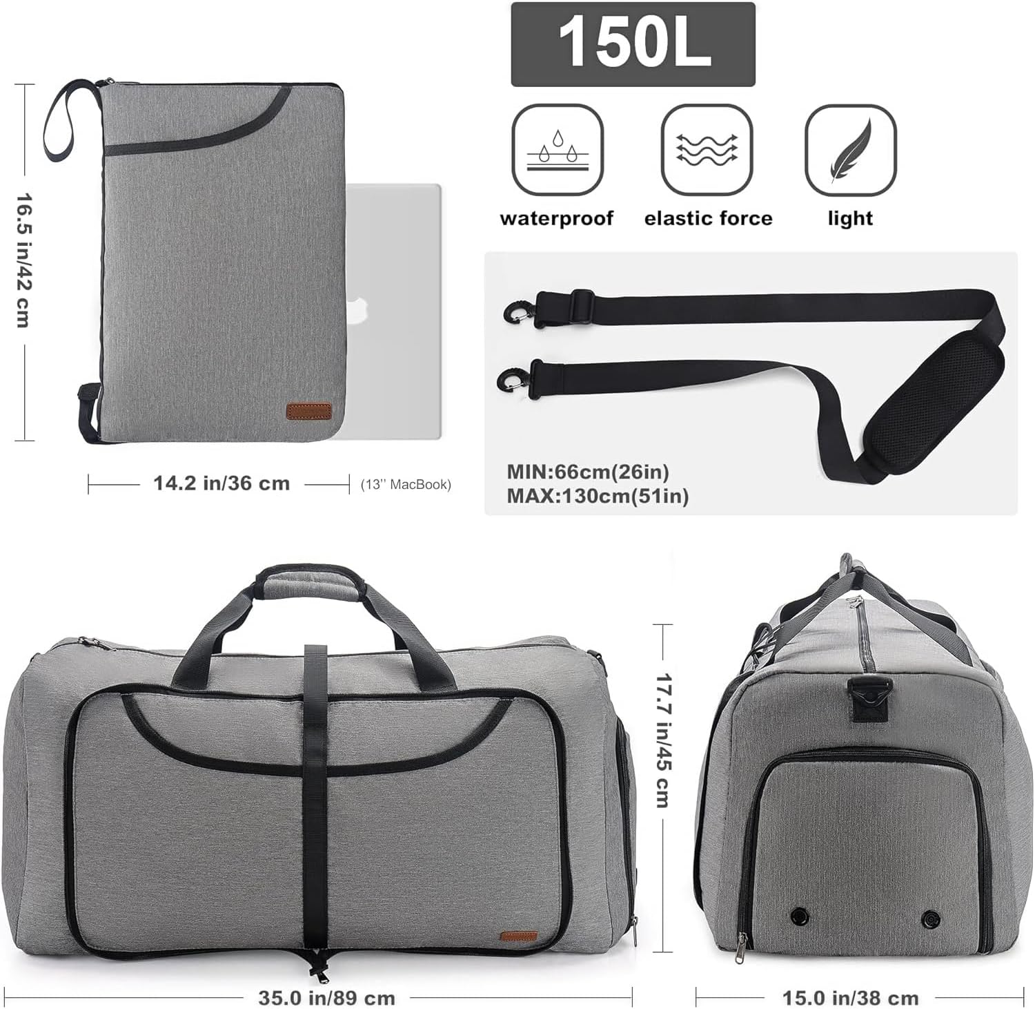 150L Duffle Bag for Travel, Extra Large Foldable Waterproof Travel Duffel Bags Weekender Overnight Bag for Men and Women with Shoe Compartment (Gray)