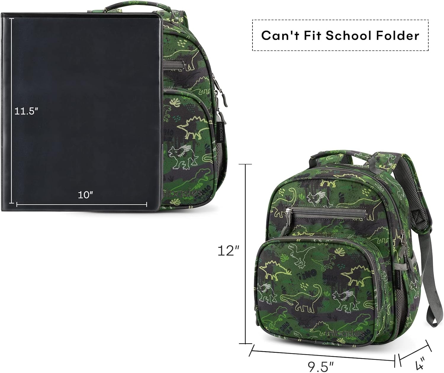 mibasies Toddler Backpack for Boys 2-4: Cute Kids Backpacks Boys - Preschool Kindergarten Backpack - Green Dinosaur