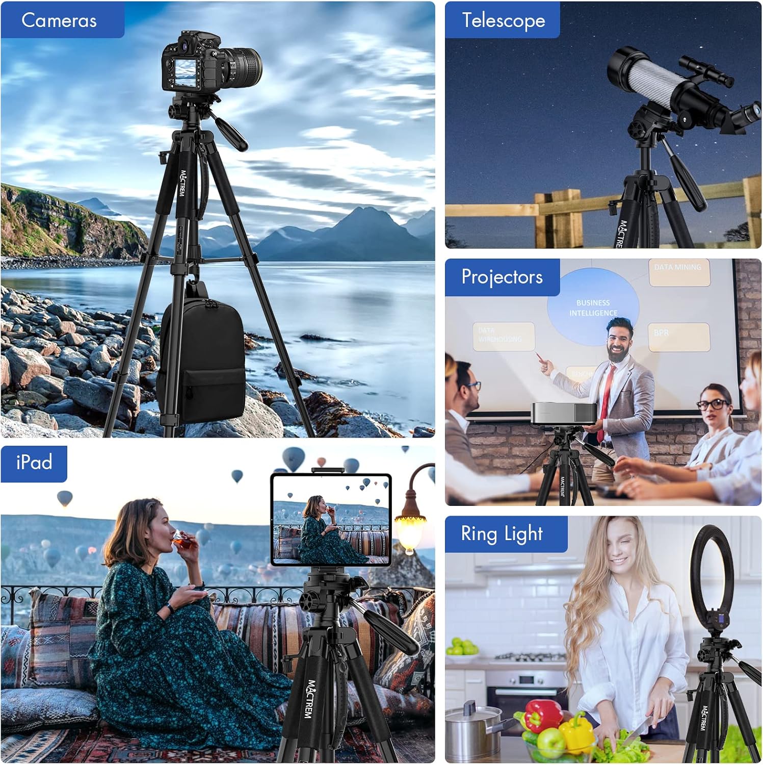 MACTREM 75 Inch Camera Tripod for Sony Canon Nikon, Lightweight Travel Video Aluminum Tripod Stand with Cell Phone Mount for iPad Phone