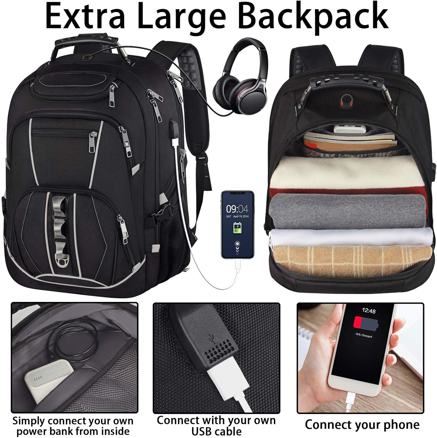 18.4 inch Gaming Laptop Backpacks with USB Charging Port, Big Capacity TSA Friendly RFID Anti Theft Pocket College Heavy Duty Computer Work bag for Men