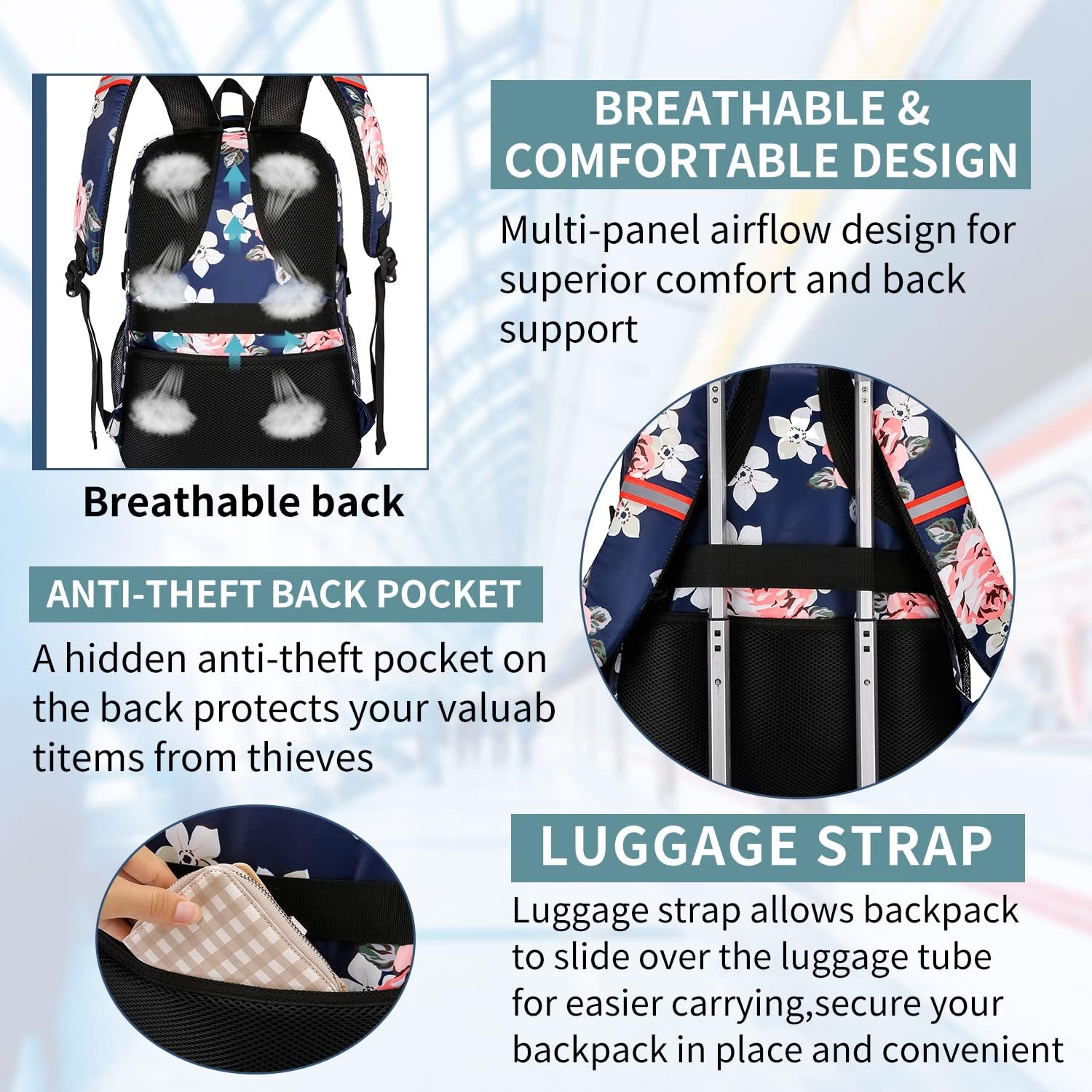 - LARGE SIZE & DURABLE MATERIAL- the womens laptop backpack Dimension: 19.7"H x 13.4"W x 7.9"D. weight: 2.07lb, Capacity: 50L, separate padded laptop compartment hold for 15.6, 17 and up to 17.3inch Laptop/computers for adults, women and teacher. The womens travel backpack made from high quality polyester fabric anti scratch with high density nylon lining for better tear and water resistant and heavy duty backpack. Travel backpack is an idea gift for women.
