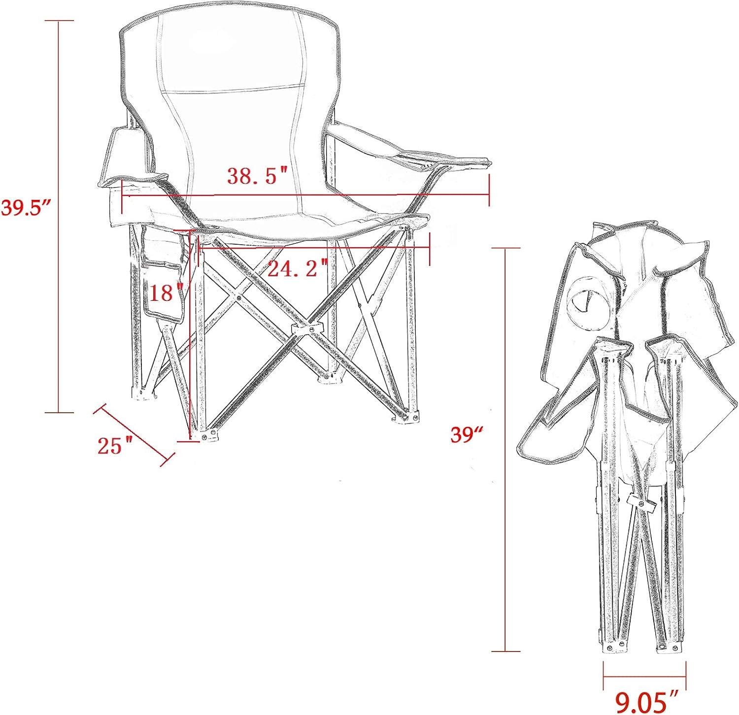 - šŖ HEAVY DUTY STEEL FRAME: This Camp Chair Uses Reinforced Frame With Two Extra Front Support Poles, Weight Capacity 475lbs. Durable Rustproof Coating For Long-term Use.