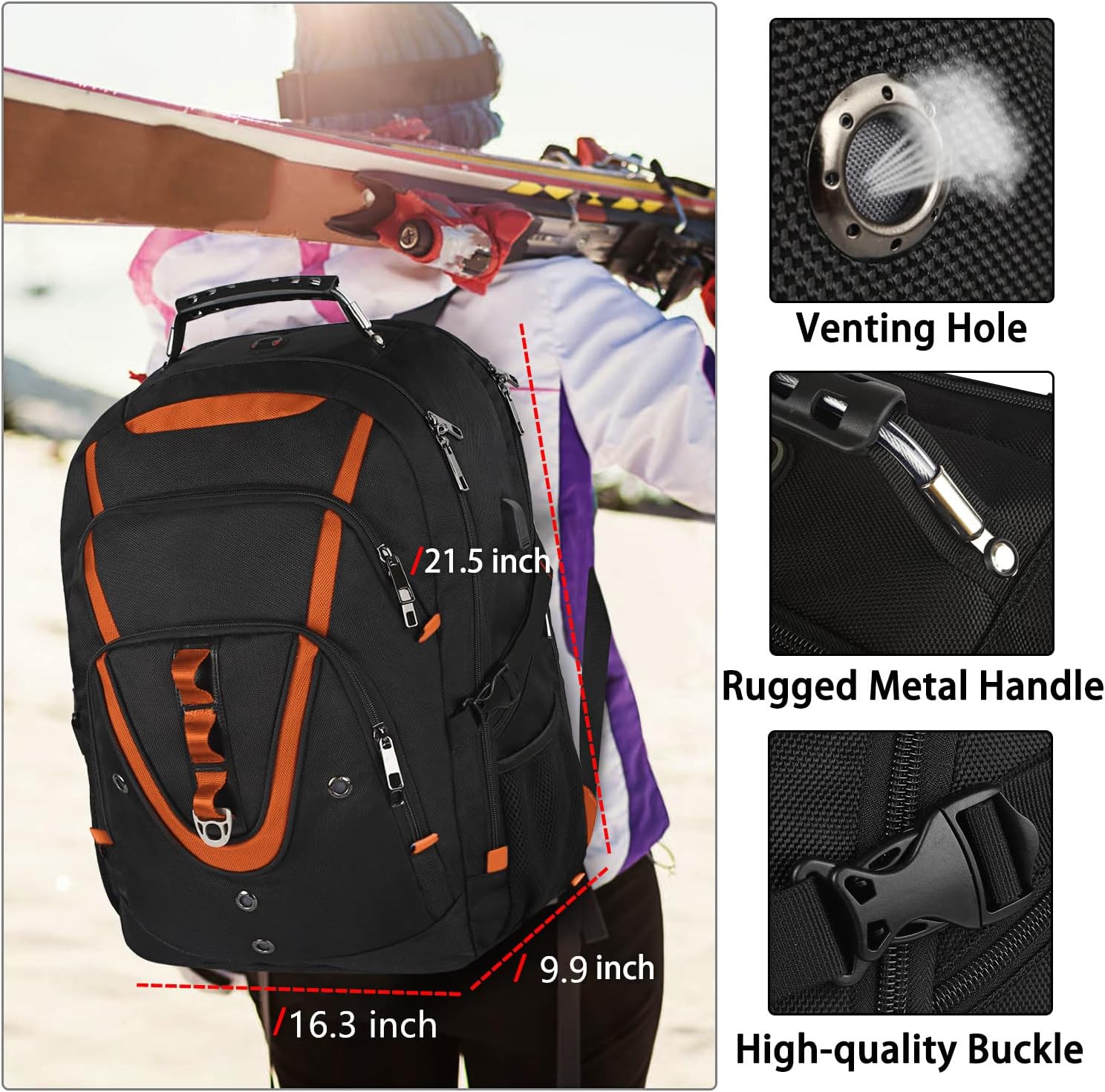 18.4 Laptop Backpack Women Men, 55L-60L Flight Approved Extra Large Travel Backpack RFID Anti Theft and TSA Friendly Backpack, Water Resistant College School Heavy Duty With USB Charging Port, Orange
