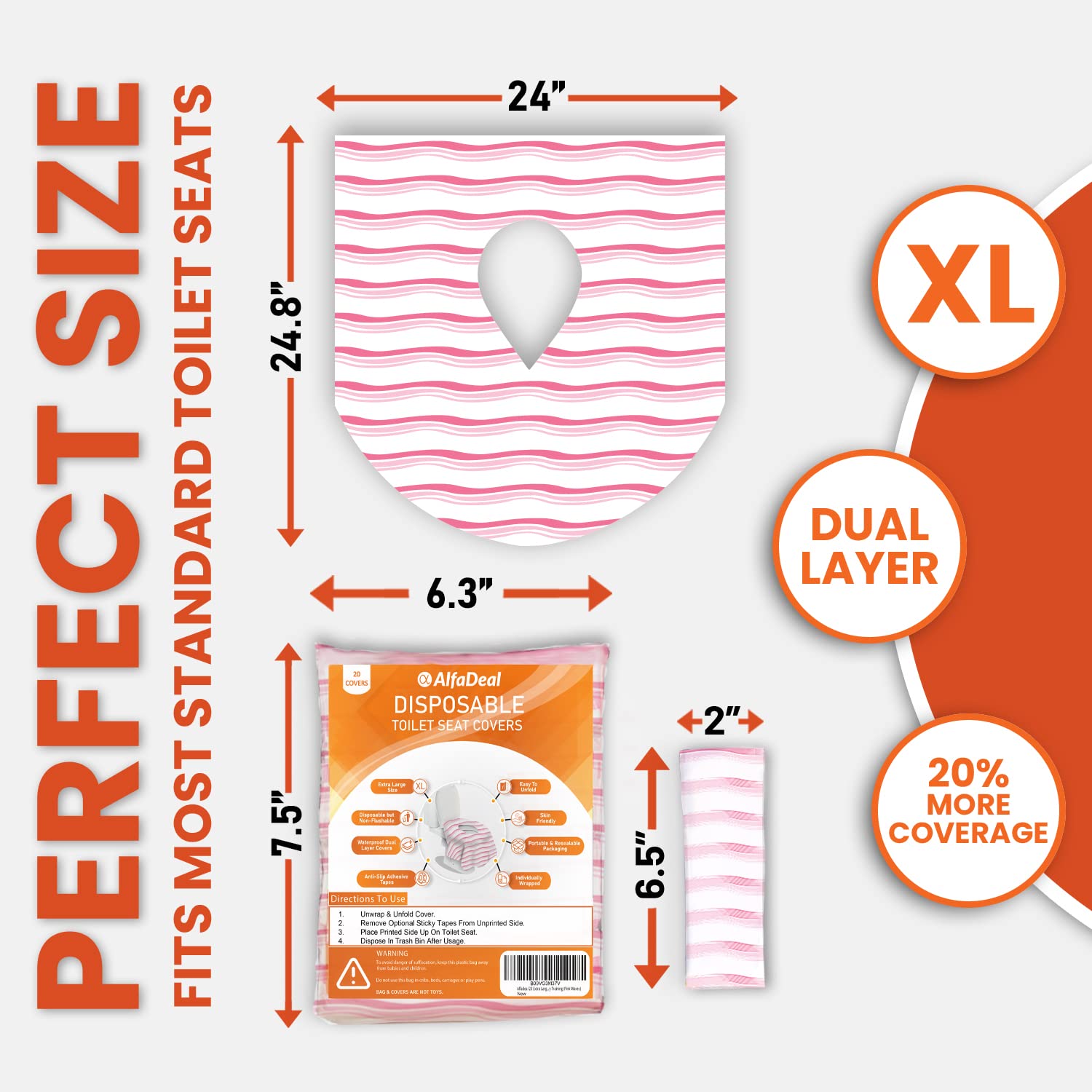 20 Extra Large Toilet Seat Covers Disposable for Kids & Adults-Toilet Covers Disposable for travel-Toddler Toilet Seat Cover Liners for Potty Training-Individually Wrapped-Waterproof (Pink Waves)