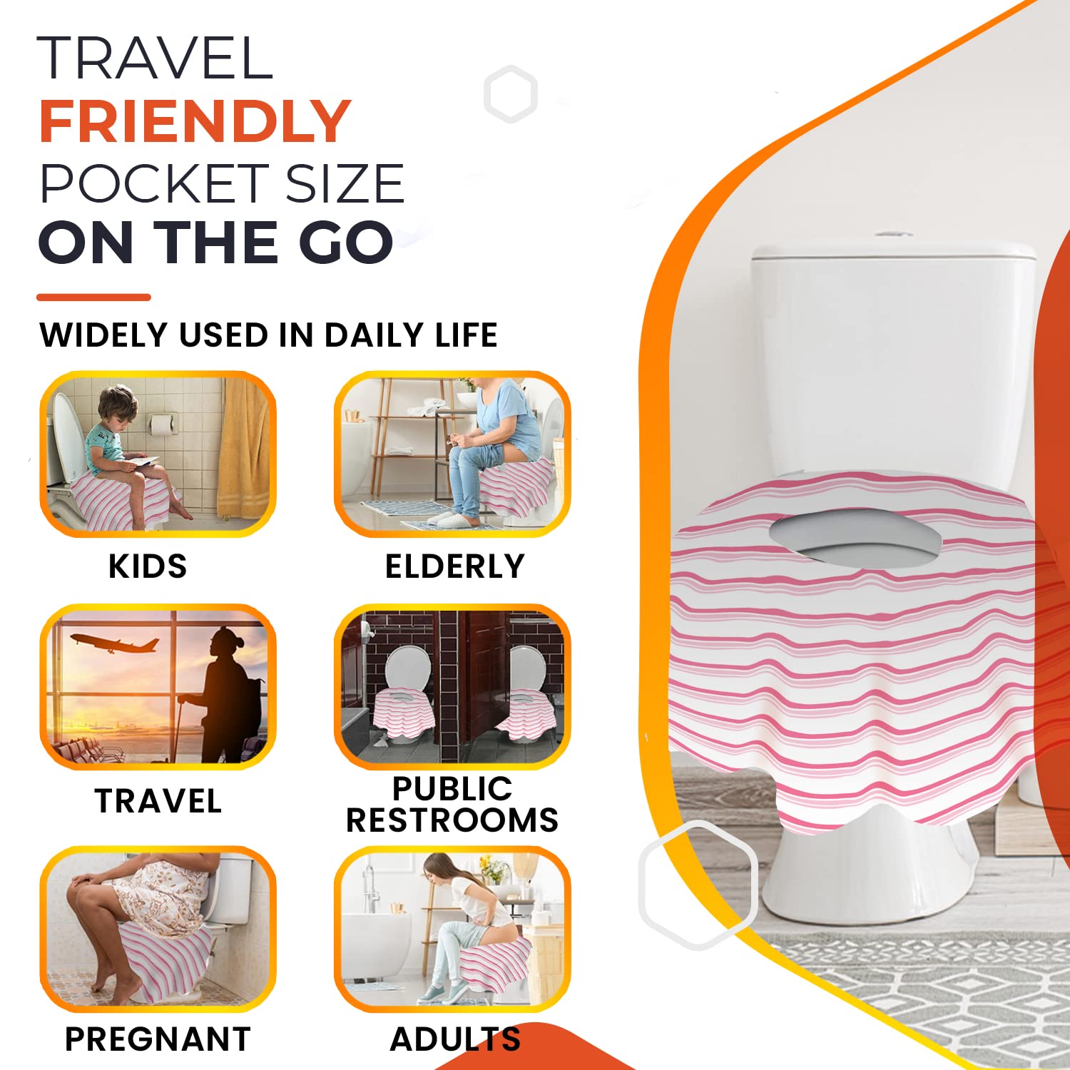- EXTRA-LARGE TOILET COVERS DISPOSABLE: Disposable potty liners for toddlers and kids are the ultimate hygiene necessity for public restrooms! Our full coverage travel toilet seat for toddlers are critical for total protection