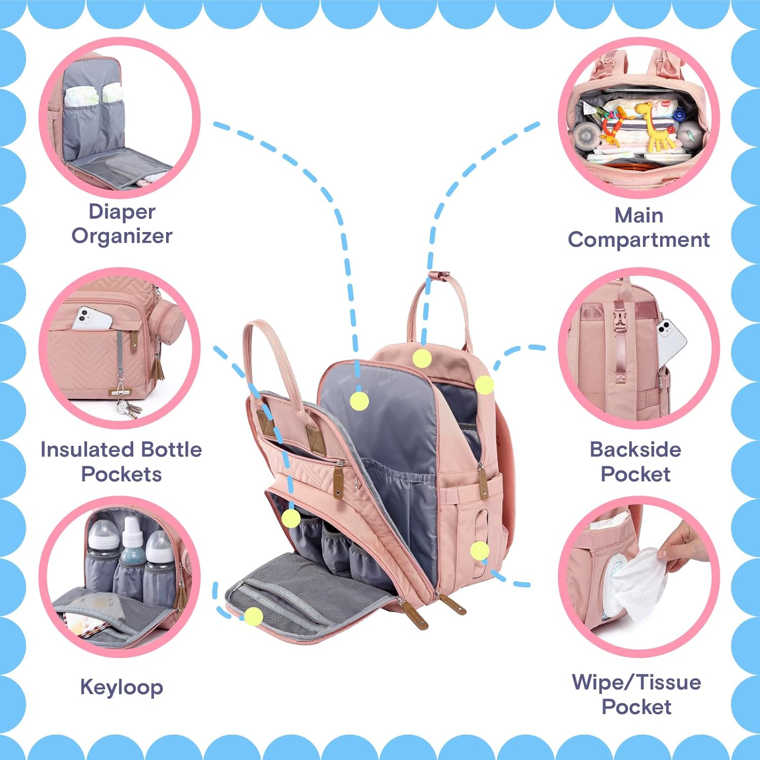 - Convenient on the Go: Our unisex baby bag is designed with ergonomically cushioned shoulder straps to offer lightweight carrying. The easy-grab top handle brings on the go convenience for moms and dads. As well as a luggage strap at the back easily slides over carry-on luggage handles for a secure ride, which allows freeing your hand and making travel a breeze.