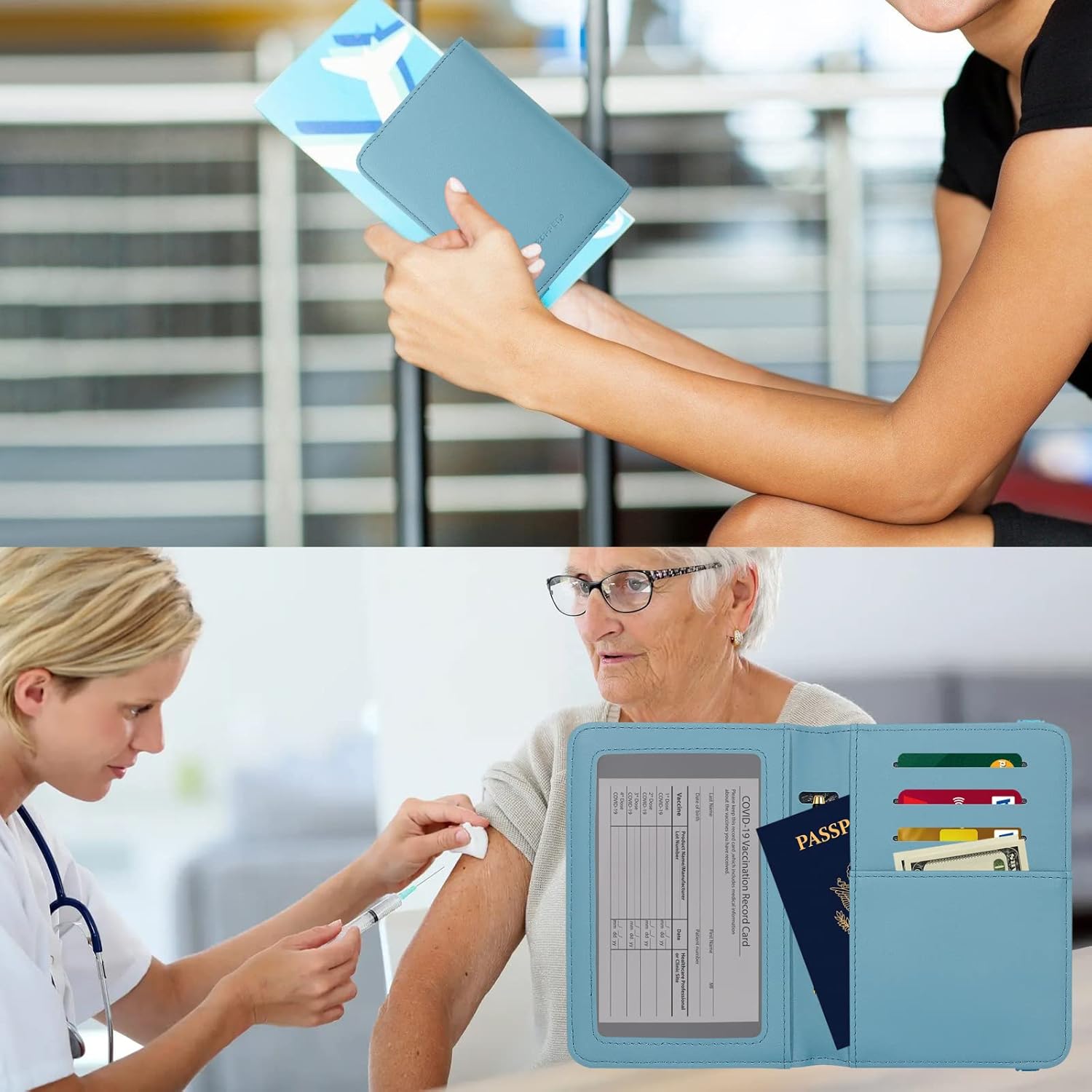 - 【Multi-functional】1 transparent Vaccine Card Sleeve,2 Passport Slot, 3 Card Slots, 1 Ticket department and 1 Pen holder (pen not included). Your passports, boarding pass, cards, CDC vaccination card will be organized well in the travel document organizer