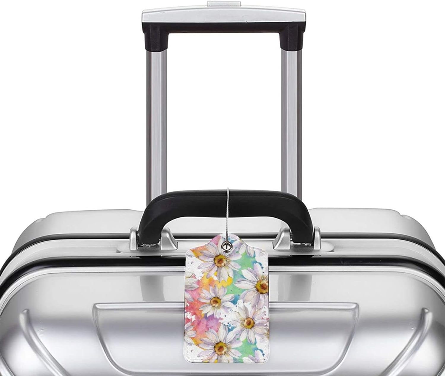 Colorful Daisy Flower Luggage Tags Suitcase Tag Privacy Name ID Card Spring Floral Travel Bag Labels with Stainless Steel Loop for Women Men Girls Set of 2