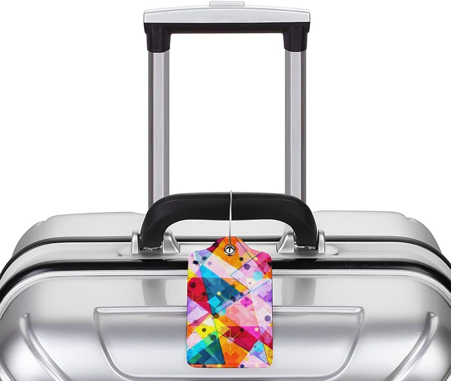 2-Pack PU Leather Luggage Tag with Colorful Geometric Pattern, Rainbow Airport Suitcase Baggage Label Tags, Business ID Card Holders Gifts for Women Men Girls Boys Kids Crew