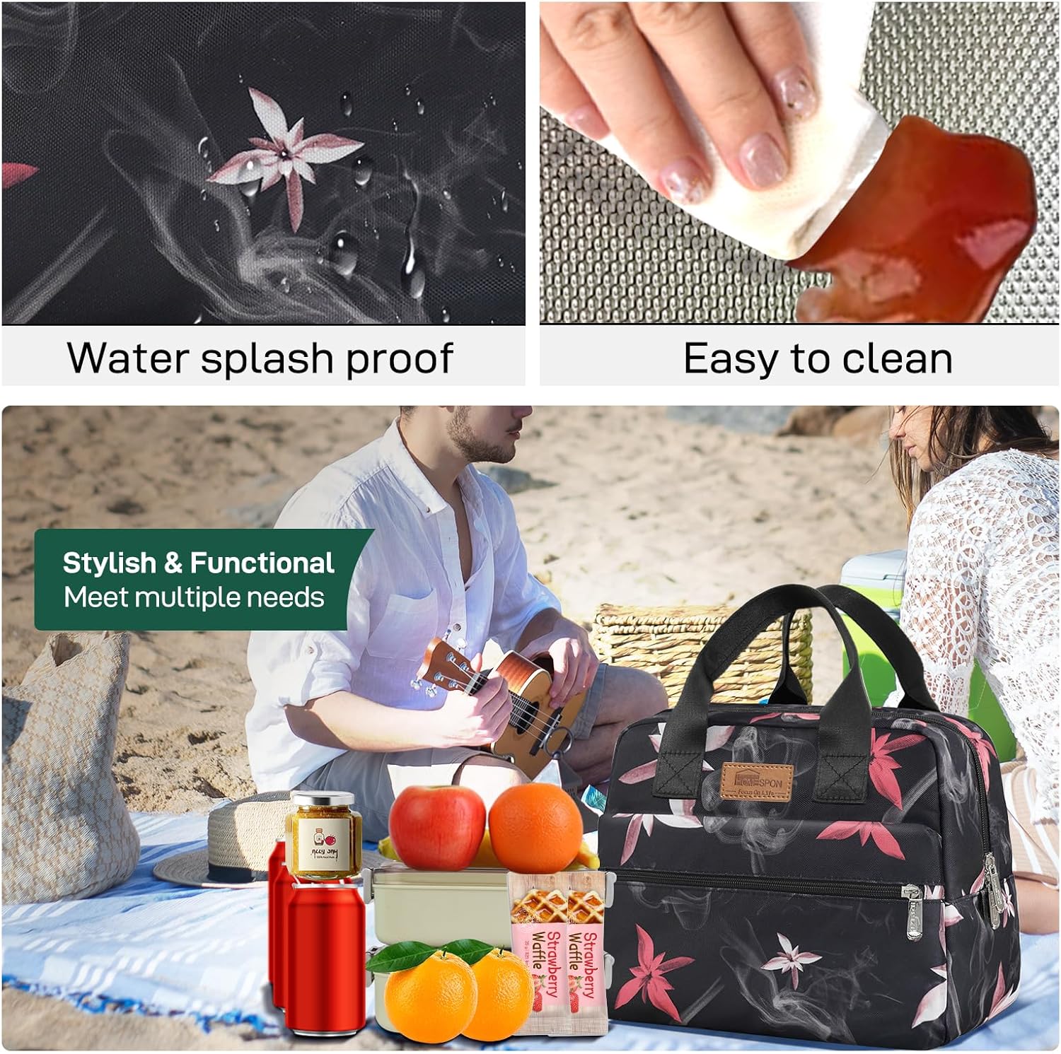 HOMESPON Insulated Lunch Bag for Women Men Lunch Box Cooler Lunch Tote for Work Picnic (Pink Flowers)