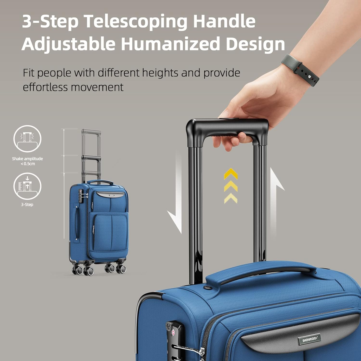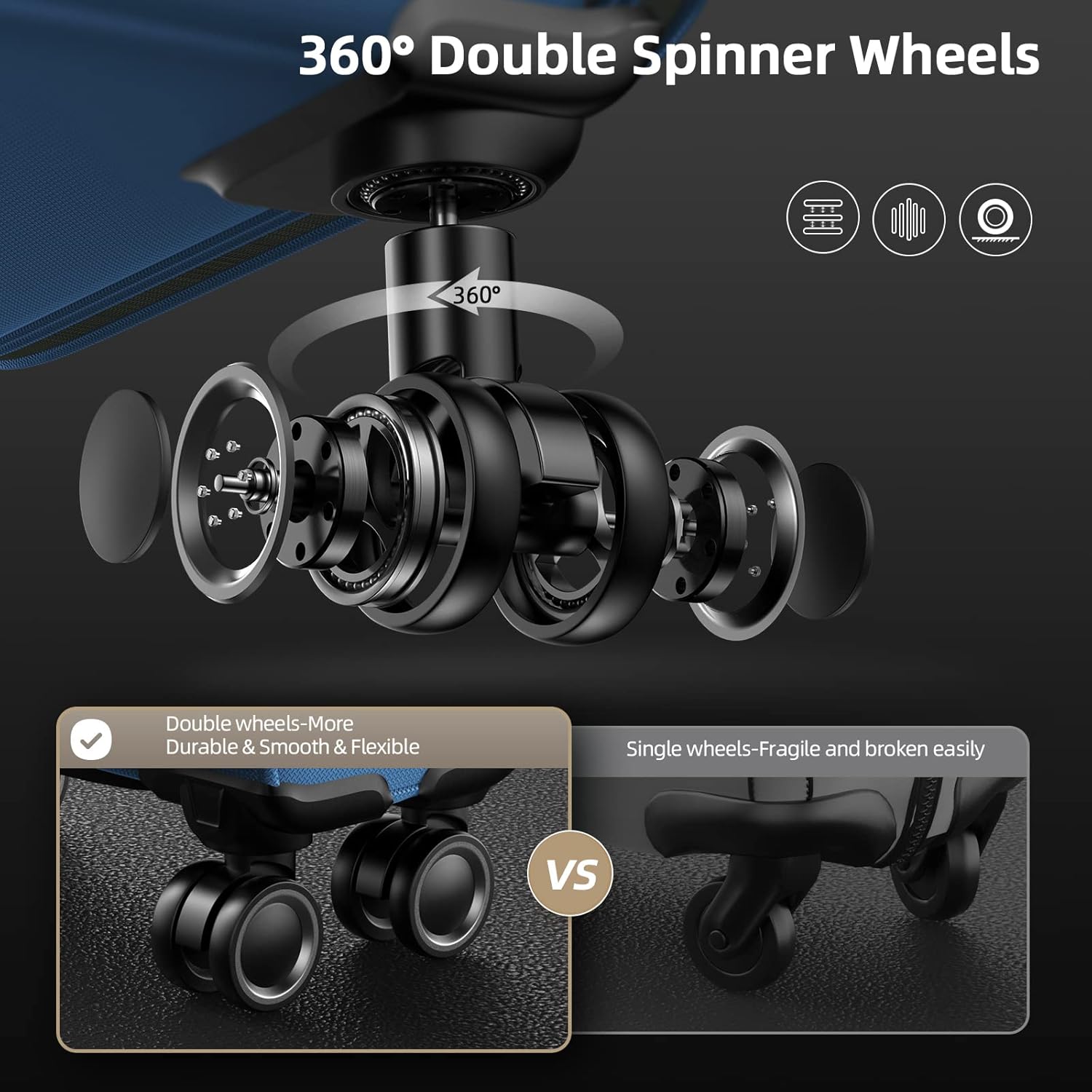 - 360° Silent Double-Row Spinner Wheels:With four 360-degree rotating wheels, the Softside Luggage Set can rotate silently and smoothly, making it easy to move. All parts roll upright, so there is no weight on the arms and travel is easy.