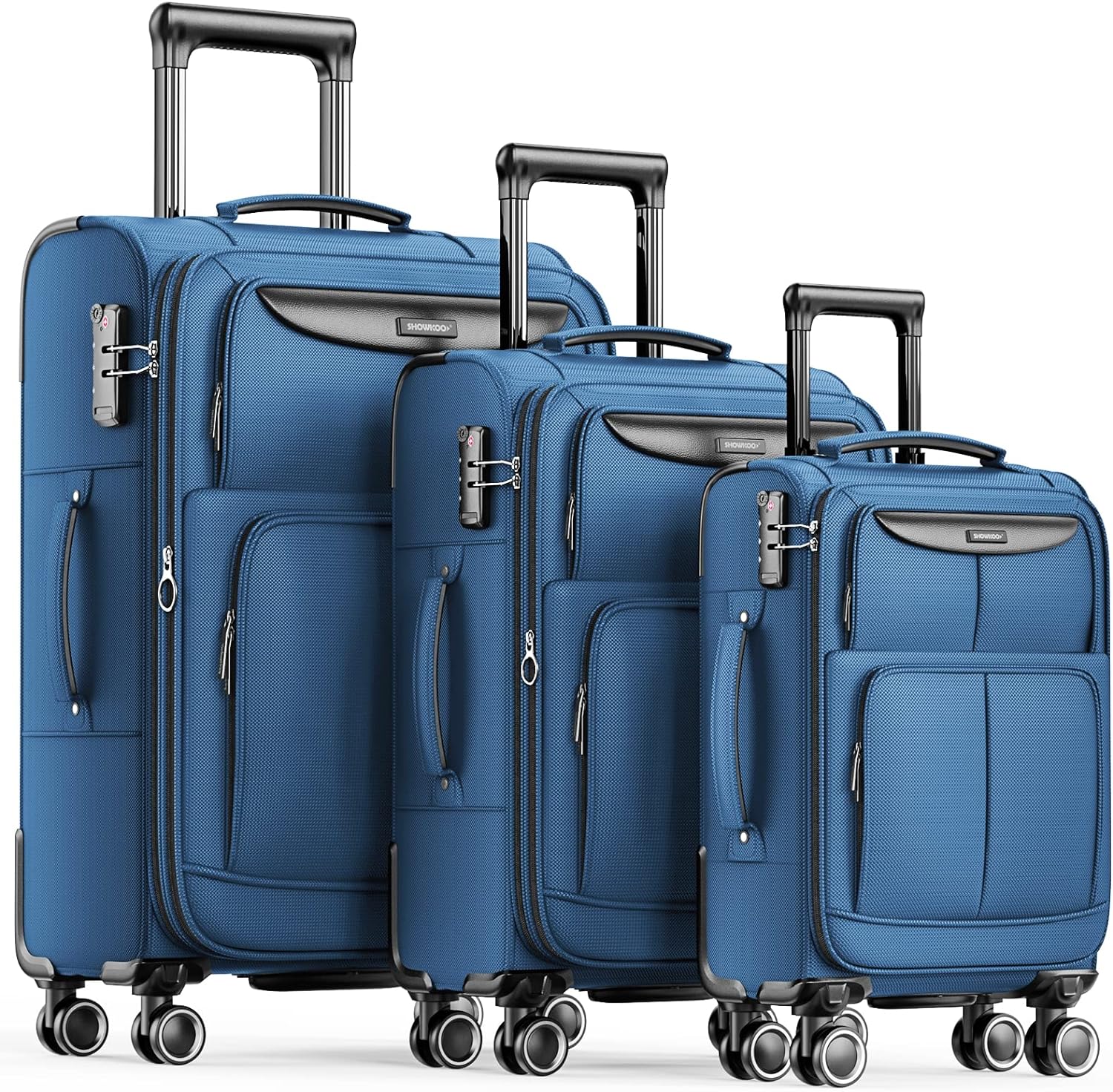 SHOWKOO Luggage Sets 3 Piece Softside Expandable Lightweight Durable Suitcase Sets Double Spinner Wheels TSA Lock Sky Blue (20in/24in/28in)
