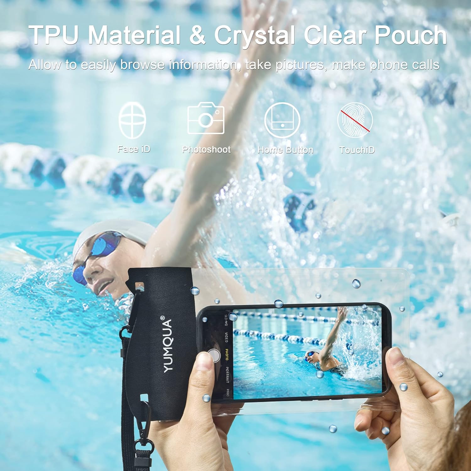 - 【Tips】1. Please make sure this waterproof cell phone pouch is sealed before using it underwater. 2. Not applicable to Touch ID. 3. The phone may be subjected to water pressure under a certain depth, which affects the operation of the touch screen. In this case, press the volume key to take a photo or record.