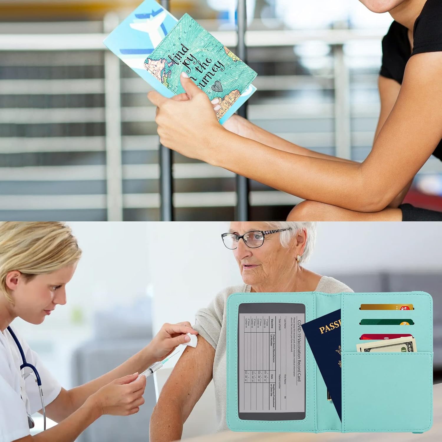 - 【Multi-functional】1 transparent Vaccine Card Sleeve,2 Passport Slot, 3 Card Slots, 1 Ticket department and 1 Pen holder (pen not included). Your passports, boarding pass, cards, CDC vaccination card will be organized well in the travel document organizer