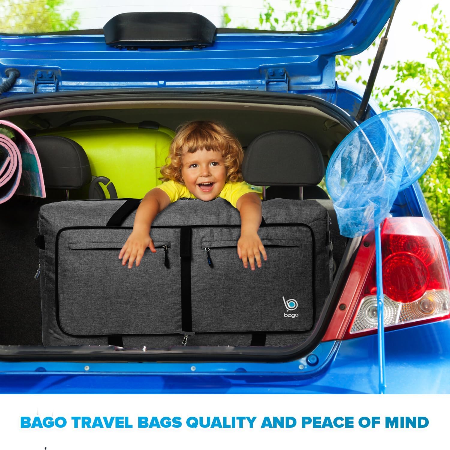 Bago Large Foldable Duffel Bags for Traveling Women & Men - 120L Packable Duffle Bag for Travel with Shoe Compartment - Water Repellant, Heavy Duty, Lightweight Folding & Collapsible (SnowBlack)