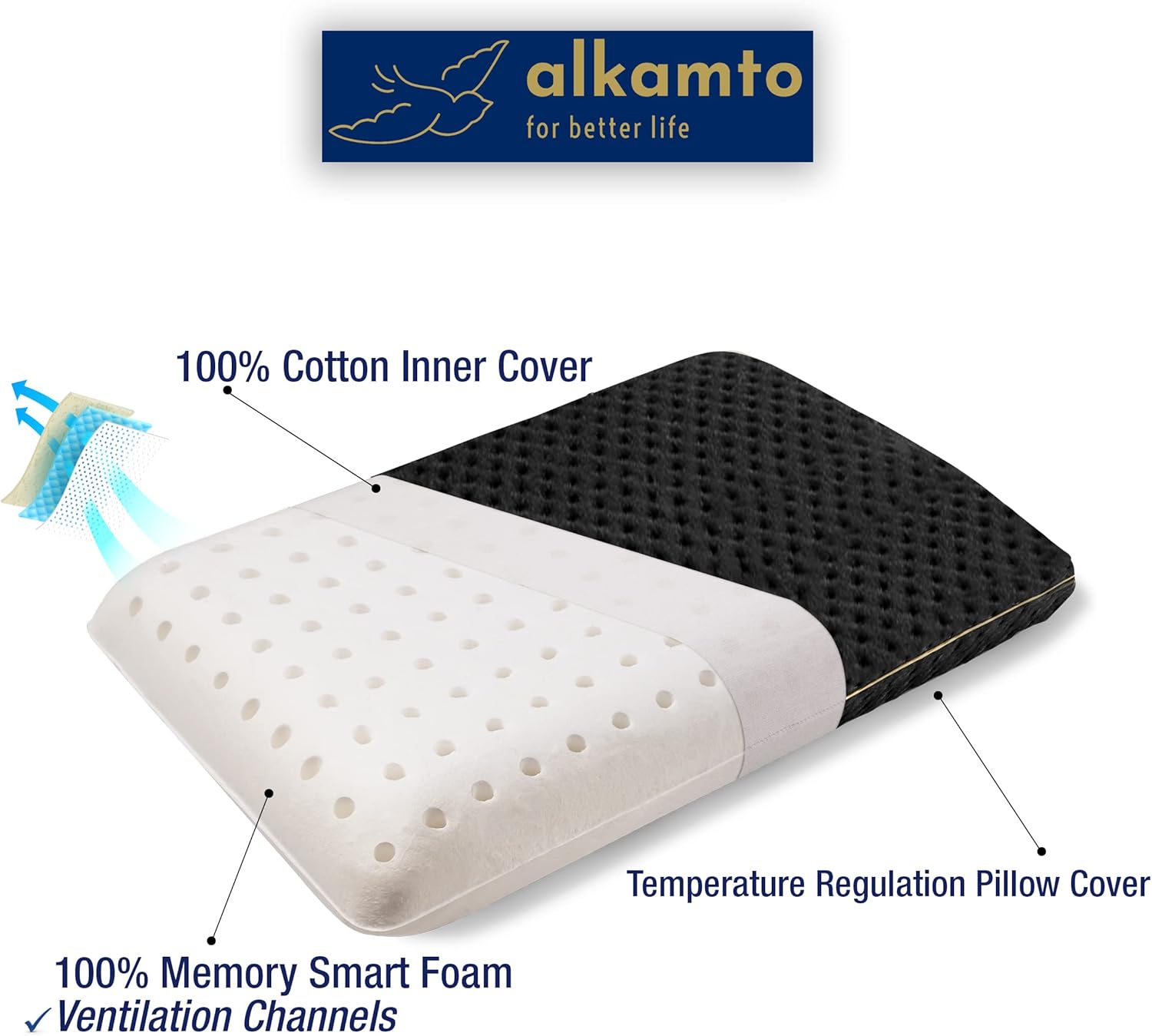 Travel & Camping Comfortable Memory Foam Pillow – Easy to Carry Portable Bag – Temperature Regulating Pillow Case (Black + Extra Cover)