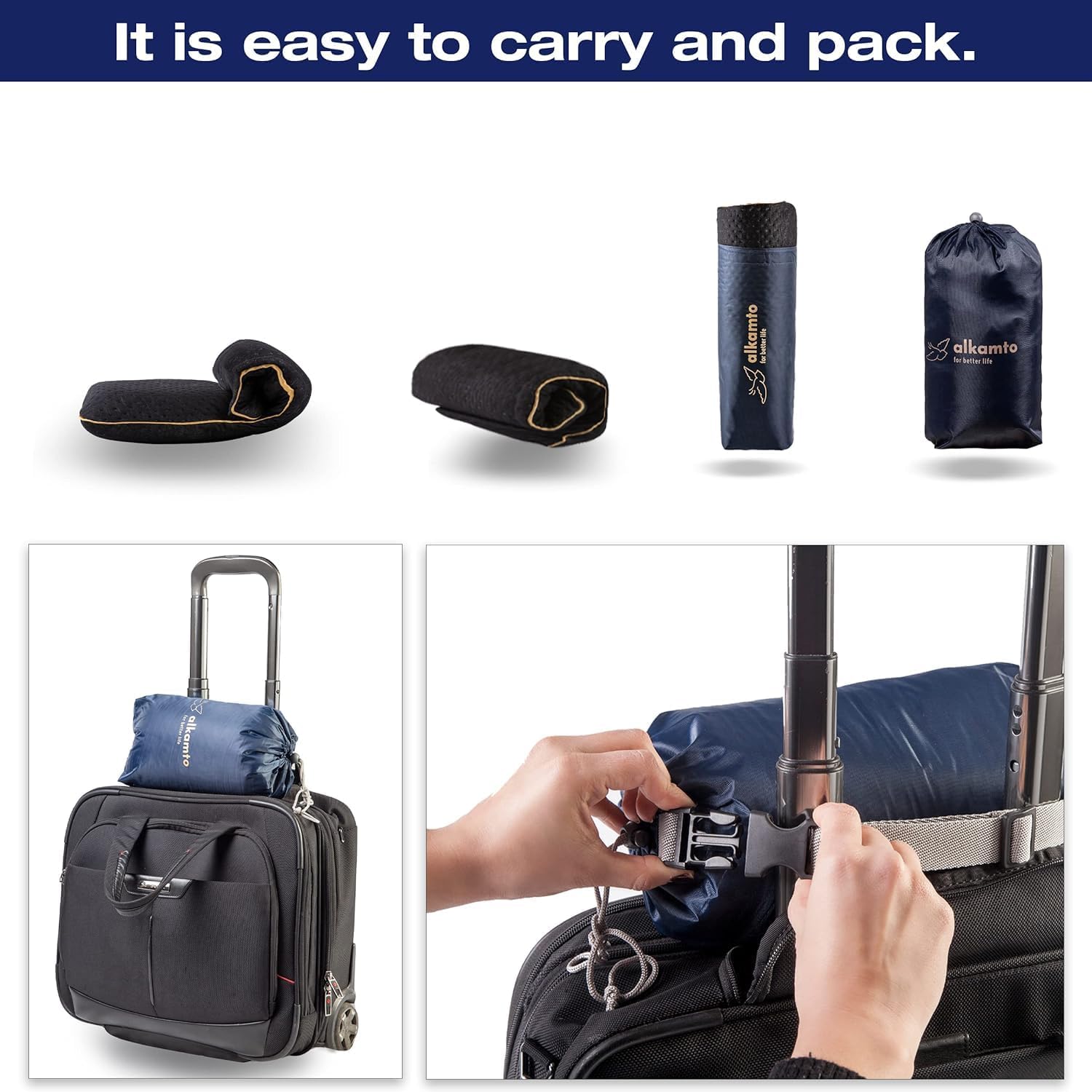 - ✔ COMFORT LIKE AT HOME - Our specially developed luxury viscoelastic memory foam pillow adapts perfectly to the contours of your head and neck, giving you all the soft comfort and support of your home pillow while on your travels, even while staying at hotels. The square, flat shape is versatile, which ensures maximizing comfort and rest no matter the position. No more uncomfortable inflated / blow up pillows, and no more stiff neck or shoulder pain when waking up!