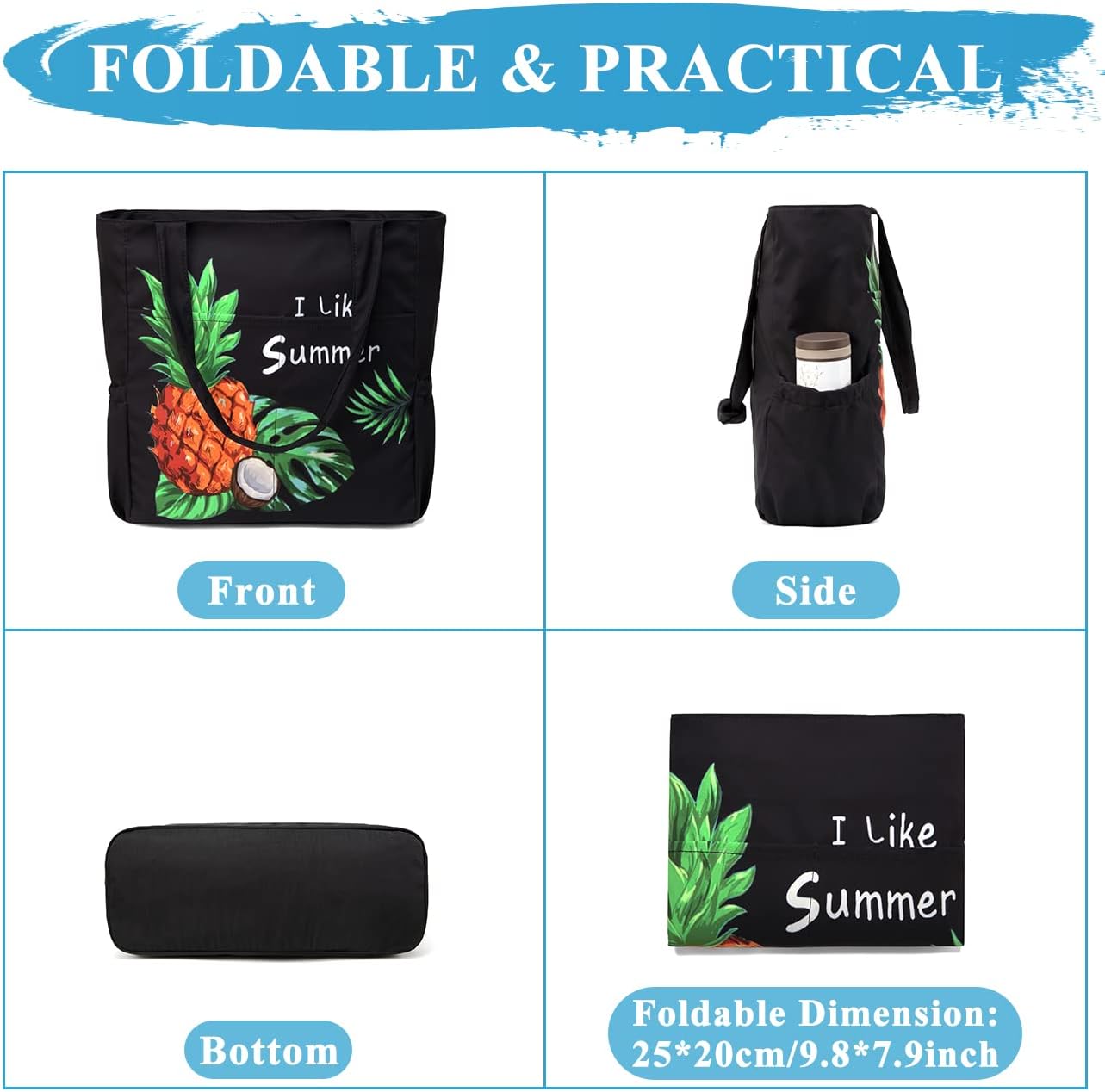 - 🏝️DURABLE & PRACTICAL: Made of durable lightweight polyester, this collapsible tote bag offers style and storage for work, every casual trip or weekend holiday. The waterproof material makes the beach bag sandproof and waterproof for boating and sunbathing. Smooth and sturdy SBS zippers ensure the long lasting usage of the grocery bag/ shopping bag/ pool bag.