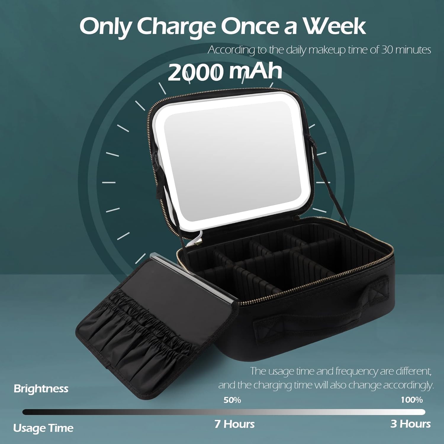MOMIRA Travel Makeup Bag Cosmetic Bag Makeup Organizer Bag with Lighted Mirror, Adjustable Brightness in 3 Color Scenarios, Waterproof Makeup Train Case, Gift for Women - Black