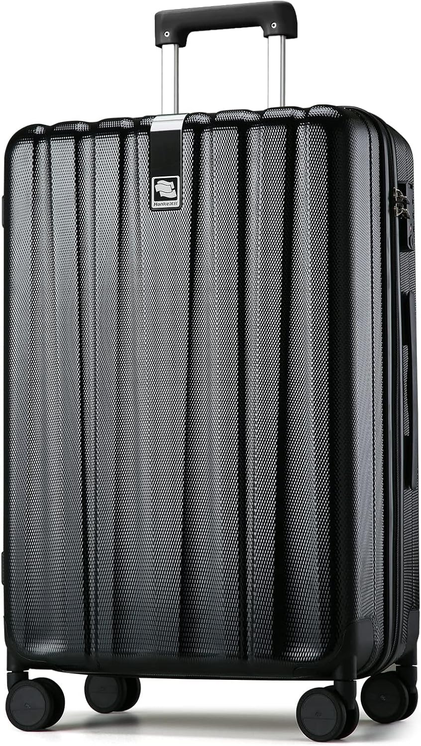 Hanke 29 Inch Luggage Suitcases With Spinner Wheels Lightweight PC hardside Rolling Suitcase With Travel Lock, Checked-Large 29-Inch(Jet Black)