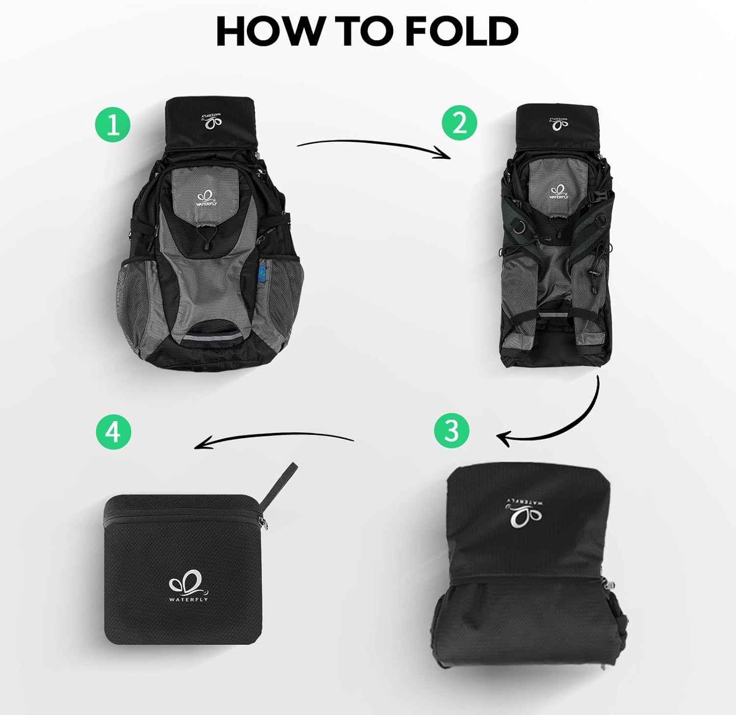 WATERFLY Lightweight Packable Hiking Backpack: 30L Foldable Travel Daypack Ultralight Camping Day Pack for Woman Man