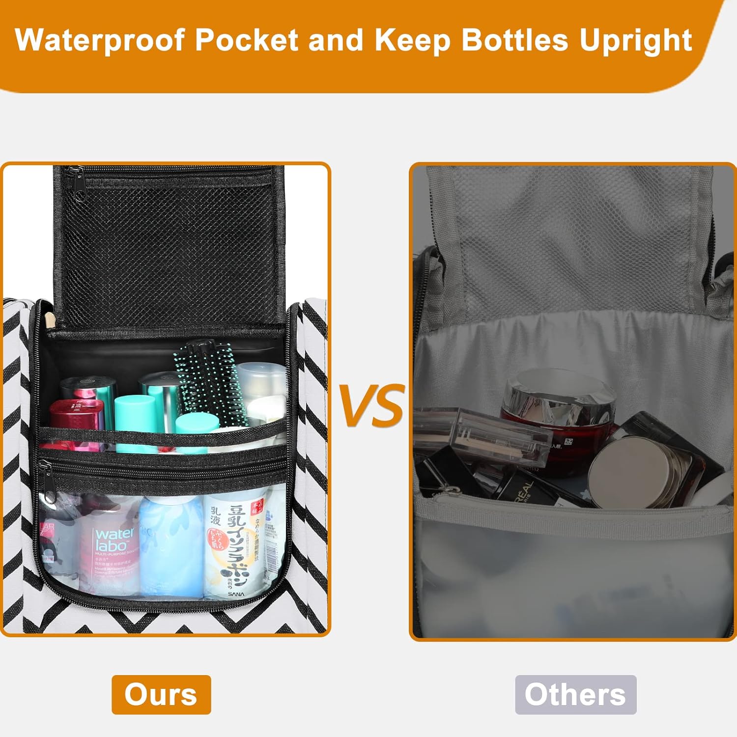 - Multiple Use: This bag can not only be used as a travel toiletry bag, but also can be used as women or girls makeup organizer bag, shower bag, cosmetic travel bag, shaving bag, travel bag for toiletries, hygiene kit bag, etc. Ideal choice for family vacation, business trip, fitness shower, hiking, camping, home use, etc. It is also a must-have for travelers, business people, and outdoor sports enthusiasts
