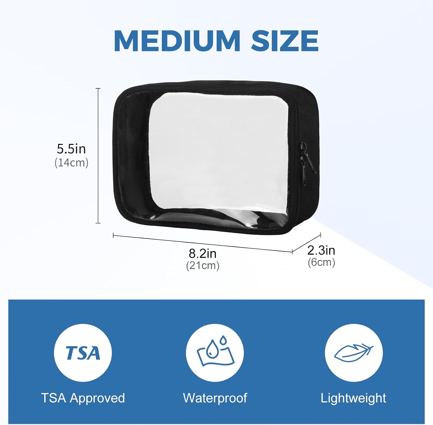 Moyad TSA Approved Clear Toiletry Bag, 1 Pack Quart Size 3-1-1 Liquids Pouch for Travel, Transparent Makeup & Cosmetic Organizer for Women Men, Black