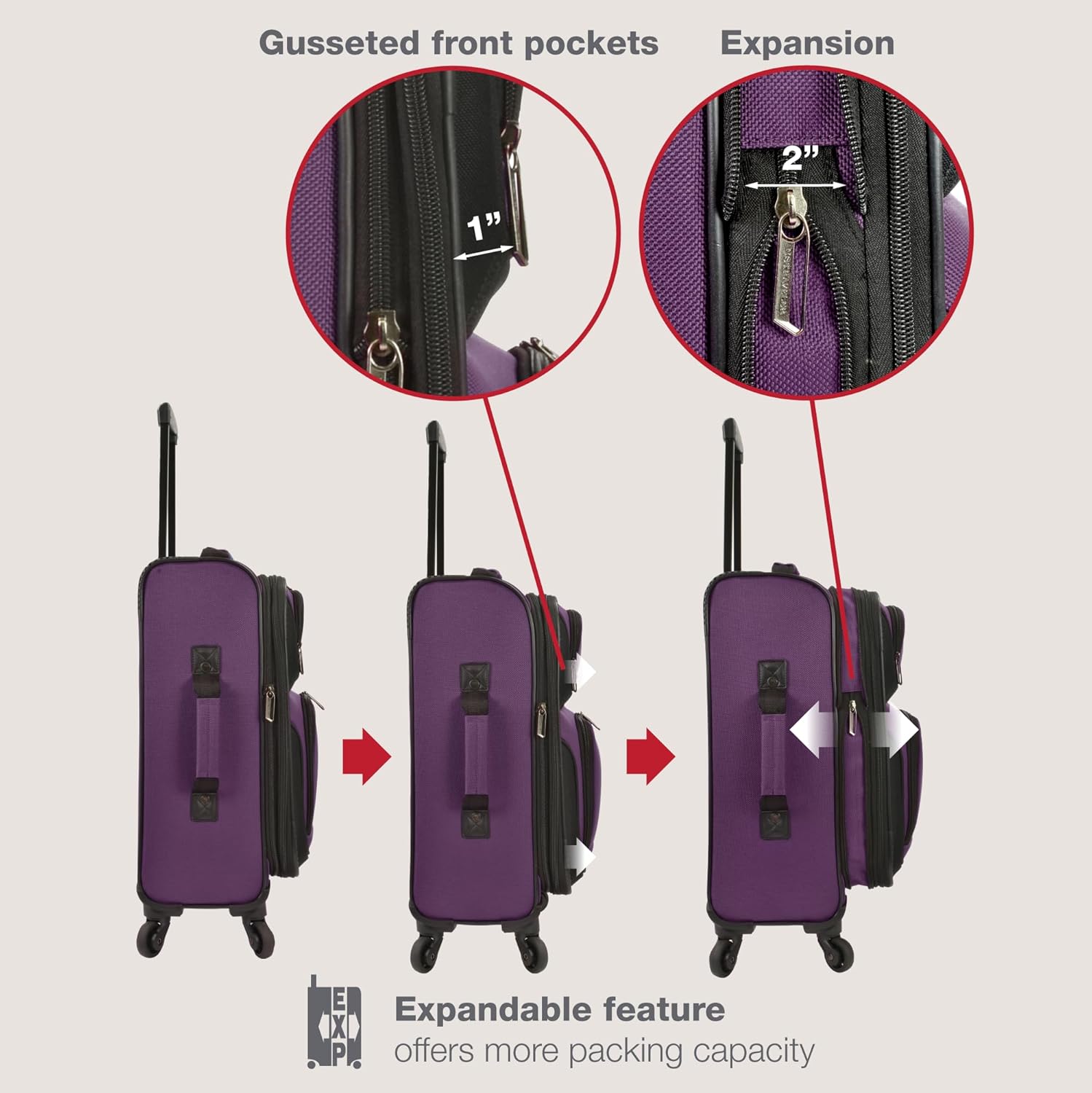 U.S. Traveler Lightweight Rolling 20" Carry On Luggage Softside Suitcase, Purple, 4 Wheel