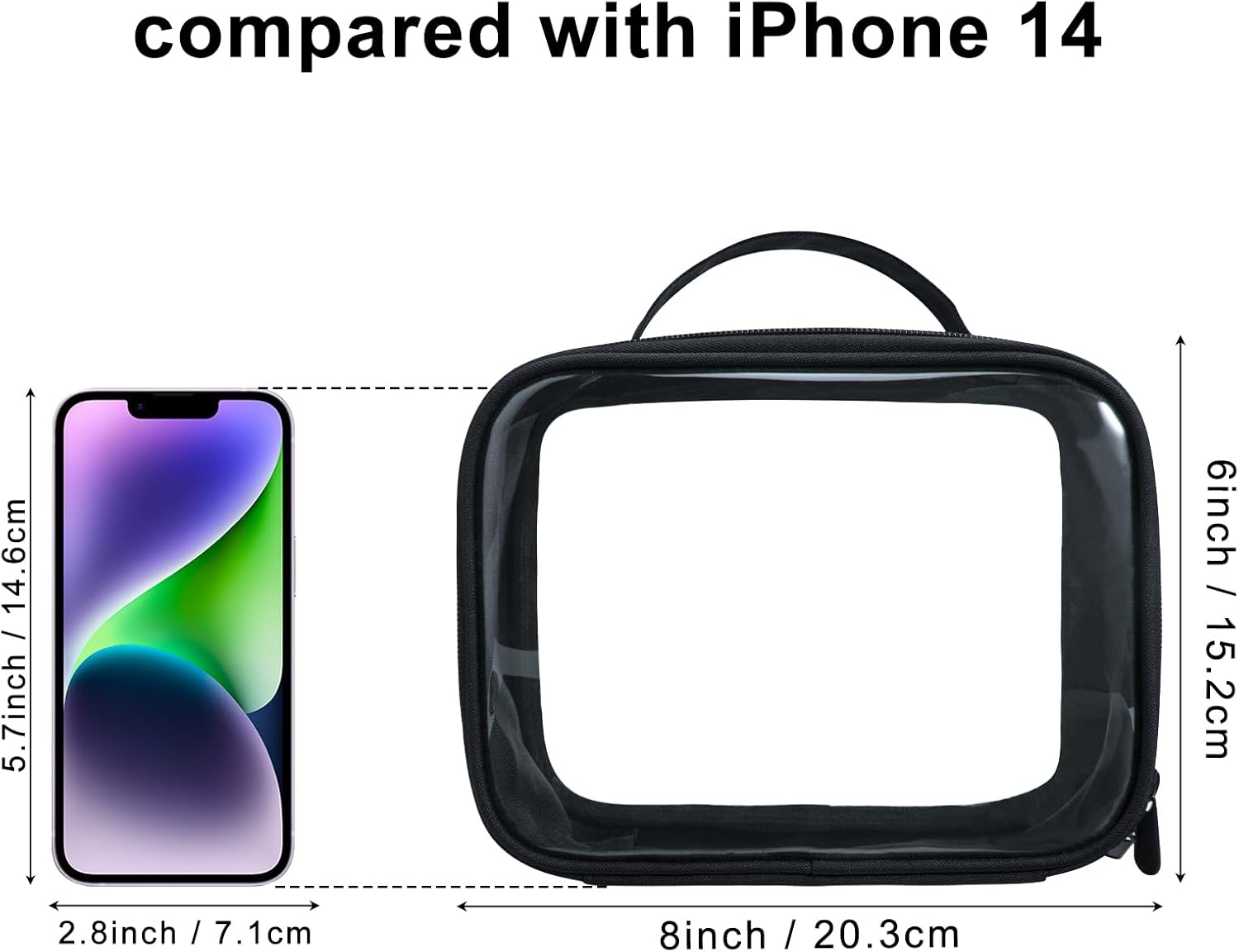- TSA Bag Clear Toiletry Bag: Upgraded from PVC to polyester, keeping away from torn up along side the zipper due to full pack or cold weather. Strong thickness make the bag more durable, Travel Pack to Hold all Your Liquids, cosmetics, makeups and easy to clean, it is reusable. Size: 8*3*6inch (20*7.6*15.2cm). Warm tips: ANRUI clear travle bags are ALL SAME SIZE