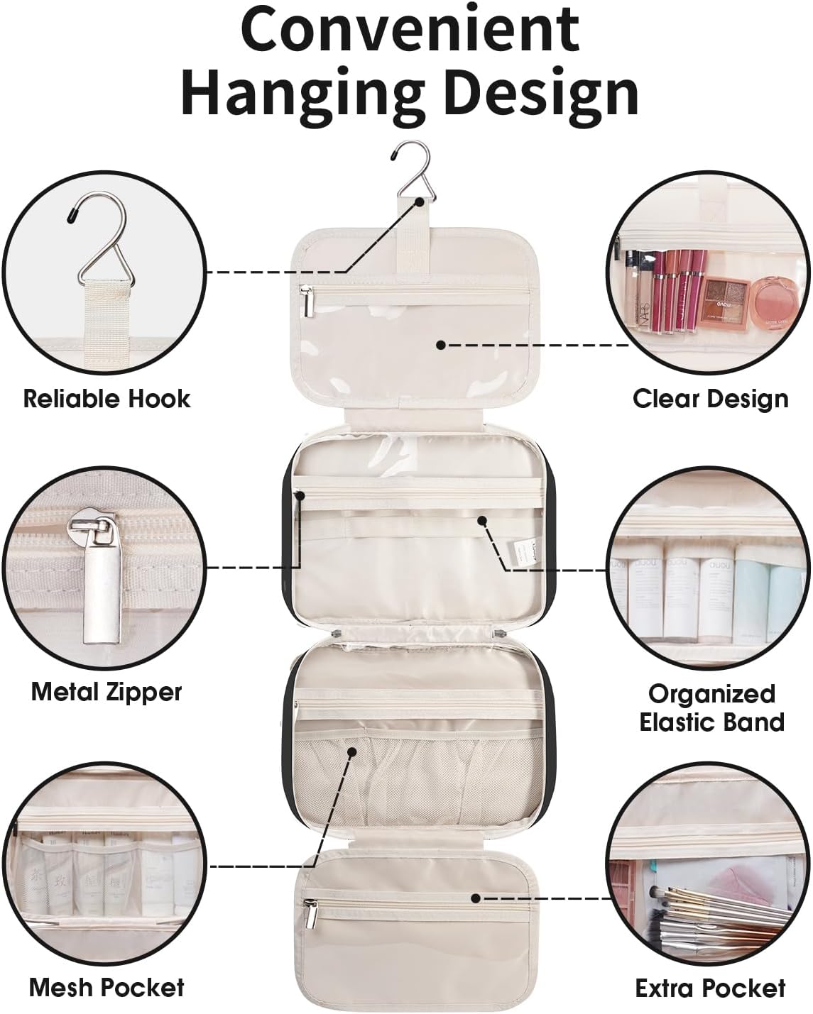 Narwey Travel Toiletry Bag for Women Large Hanging Makeup Bag Organizer Toiletries Bag for Full Size Essentials Accessories Cosmetics (Black (Large))