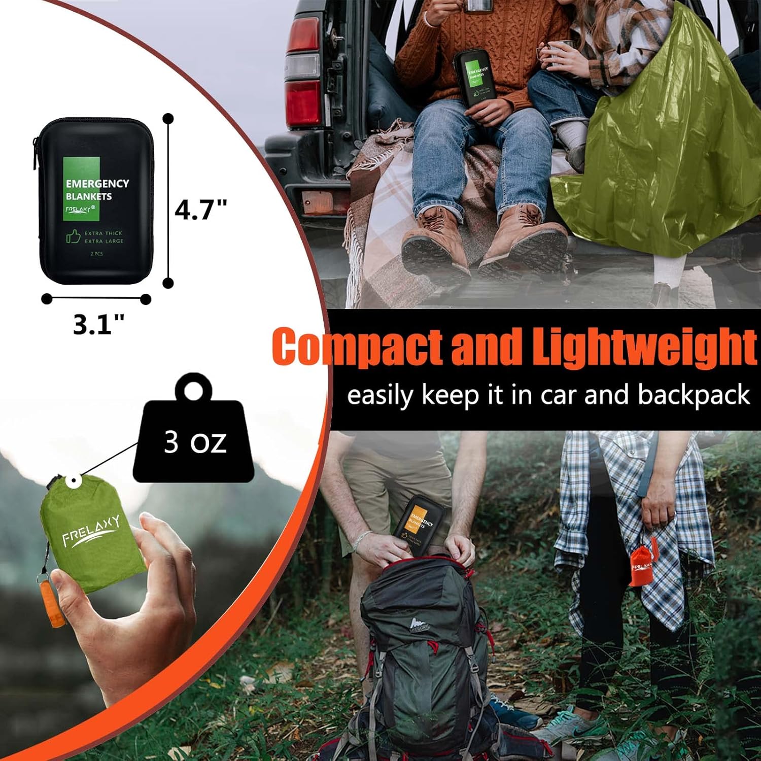 Frelaxy Emergency Blanket 2-Pack/4-Pack, Extra-Thick Extra-Large Space Blankets with Whistles, Storage Pouchs, and EVA case