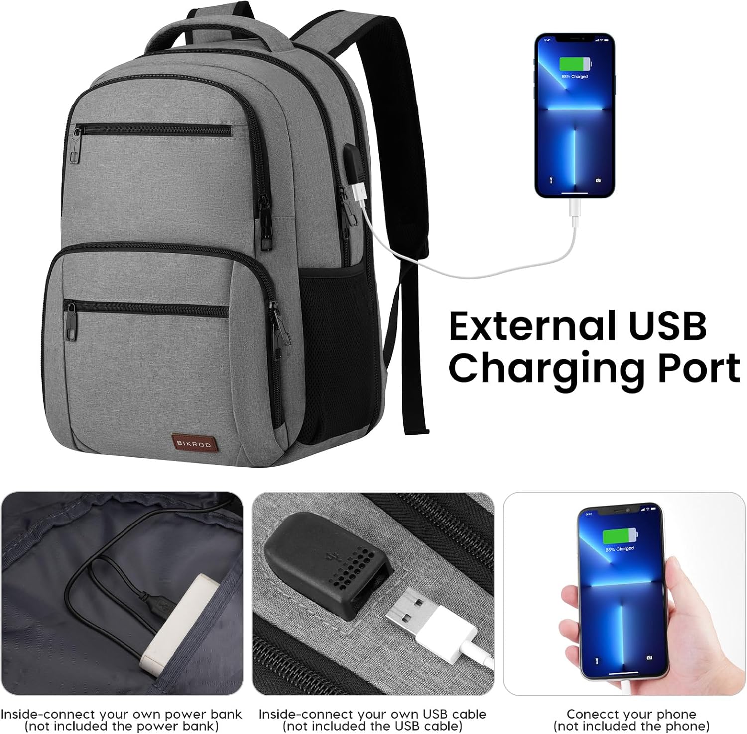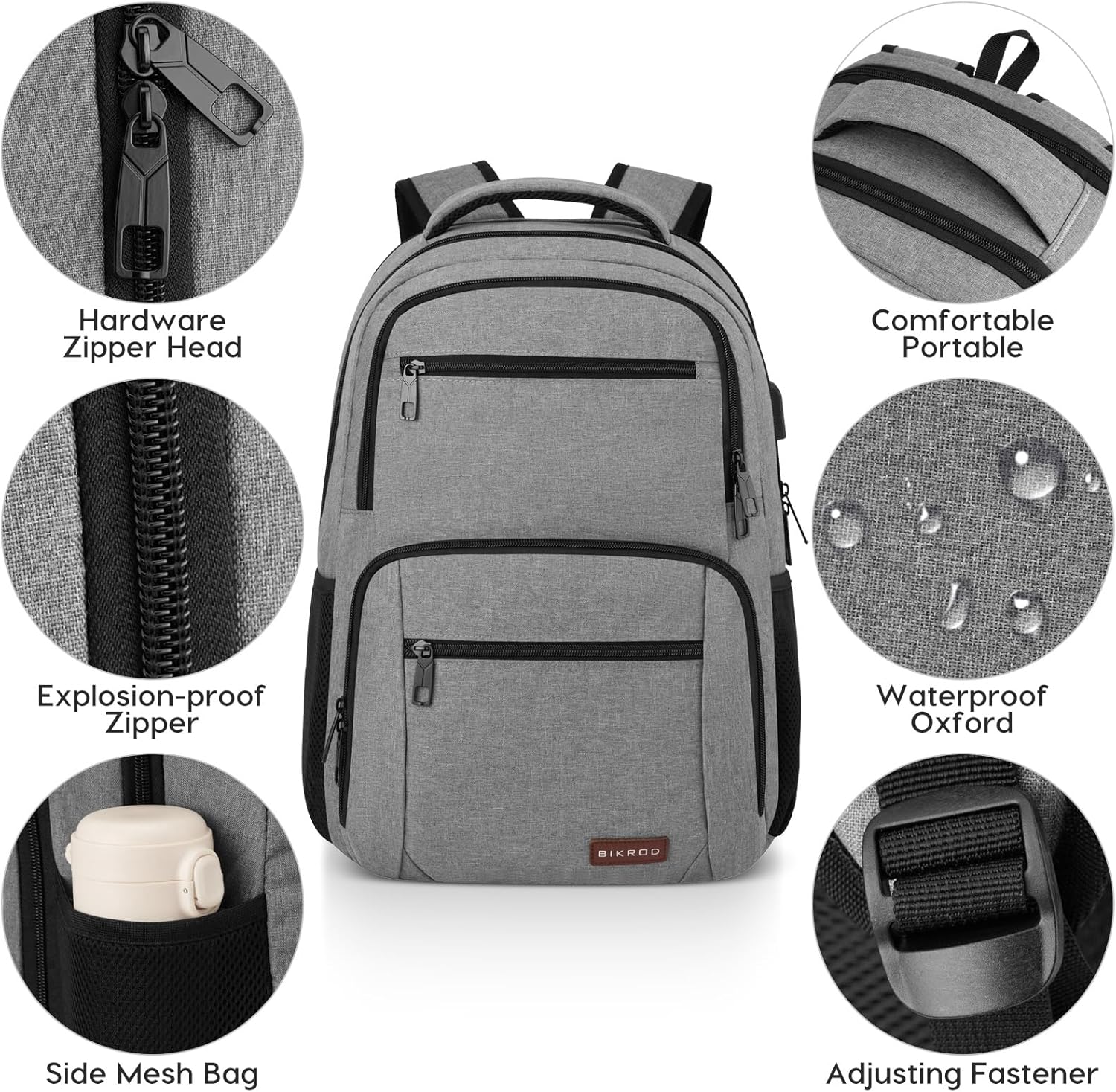 BIKROD Backpack for Men, TSA Travel Backpack, College Backpacks Water Resistant Back Pack with USB Charging Port, Business Anti Theft Durable Computer Bag Gifts Fits 15.6 Inch Laptop, Grey