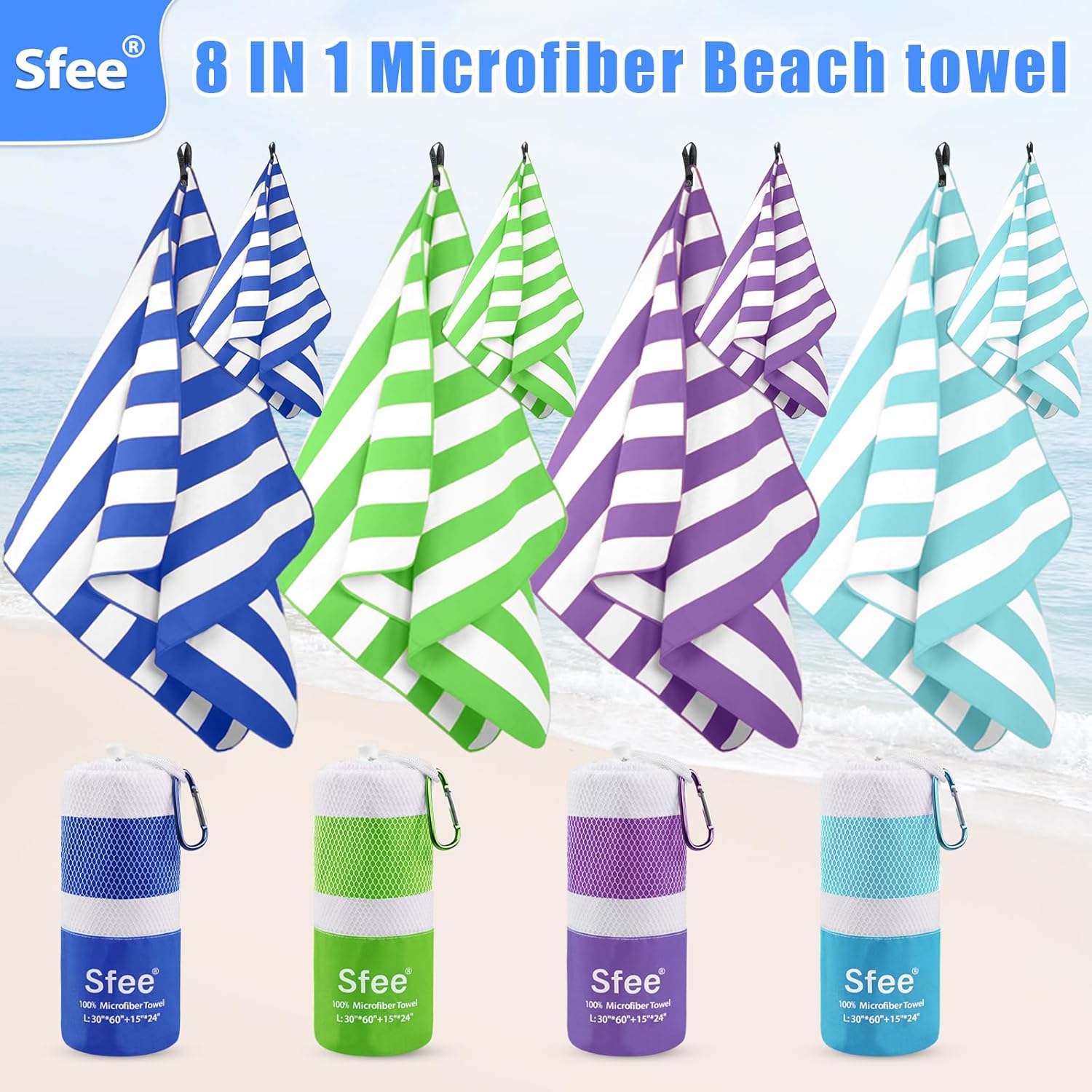 Sfee 4 Pack(8Pcs) Microfiber Travel Towel, Beach Towel Quick Dry Towel Camping Towel Super Absorbent Compact Lightweight Sports Towel Gym Towel for Beach, Gym, Hiking, Pool, Backpacking, Bath, Yoga